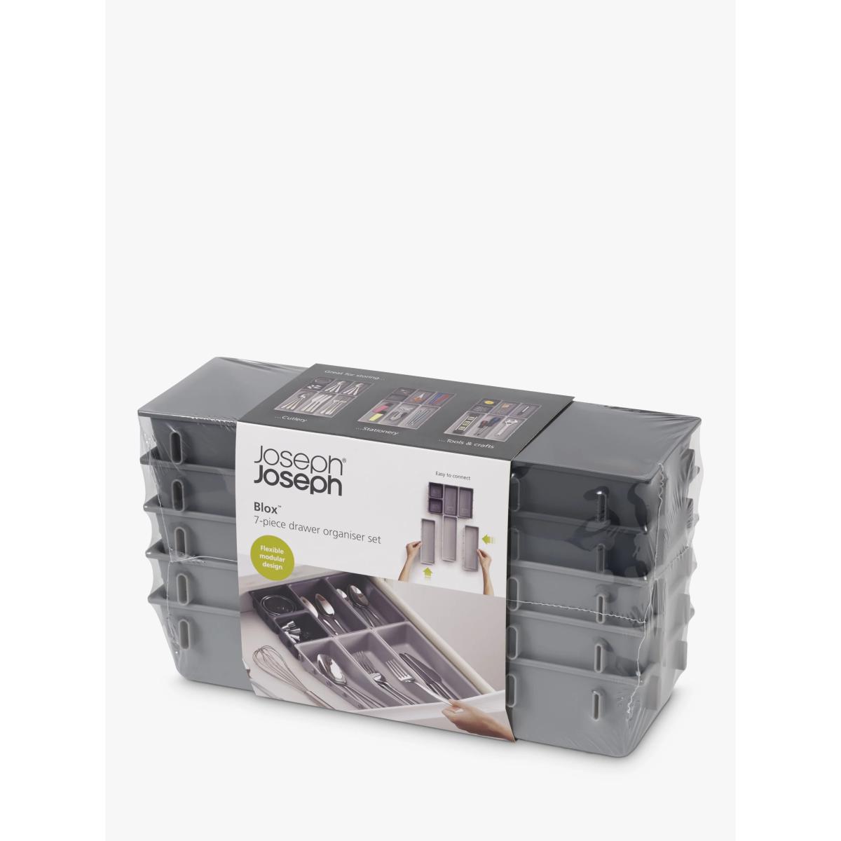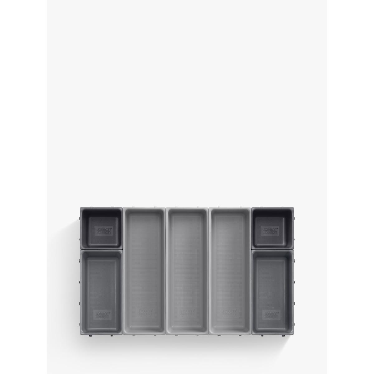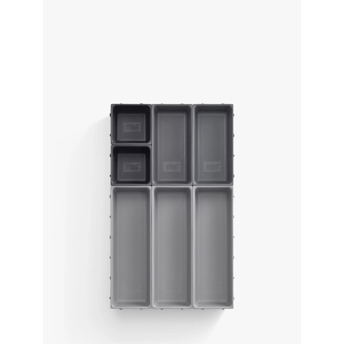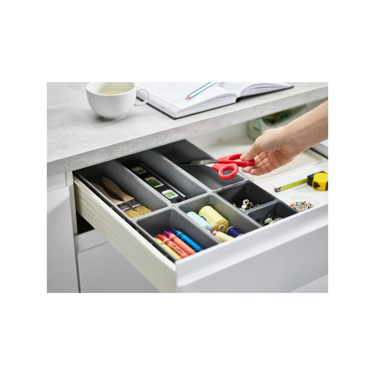 This modular design comprises seven individual trays of different sizes that are able to be clipped together on all sides, allowing you to arrange them in any order to fit your drawer space - they can even be divided and used in multiple drawers. To change the order, simply unclip each tray and rearrange as necessary. Perfect for organising and storing a wide range of household items such as cutlery, utensils, stationery, tools and craft accessories, the set also comes with self-adhesive, non-slip feet which can be applied once the final arrangement of trays has been decided.