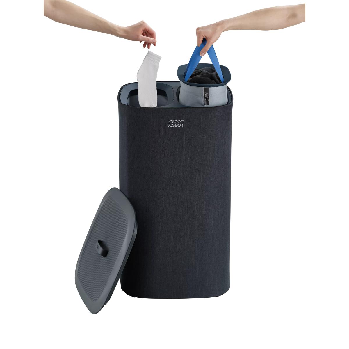 Make wash-day less of a chore with this set of two game-changing laundry helpers. Firstly, there's a Tota 60. L easy-empty laundry basket that features dual compartments for separating fabrics and removable tote bags that make transporting dirty laundry to the machine a doddle. It comes with a lid that neatly hides the contents and has a stylish fabric exterior that's designed to compliment a range of interior styles and decors. Next up, there's a holdall collapsible laundry basket that features strong carry handles and a durable fabric that holds its shape, even when empty. Perfect for carrying damp washing outside to the washing line or dry laundry around the home, the inside is moisture- resistant and easy to wipe clean. Best of all, when you're finished, it folds flat making it easy to store in a narrow space. Both baskets come in a matching grey fabric and are perfect for storing in the bathroom, bedroom or utility room.