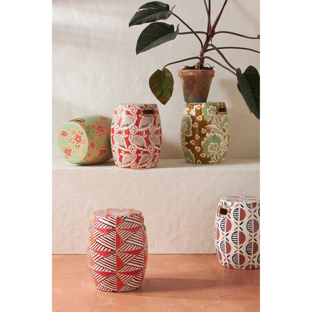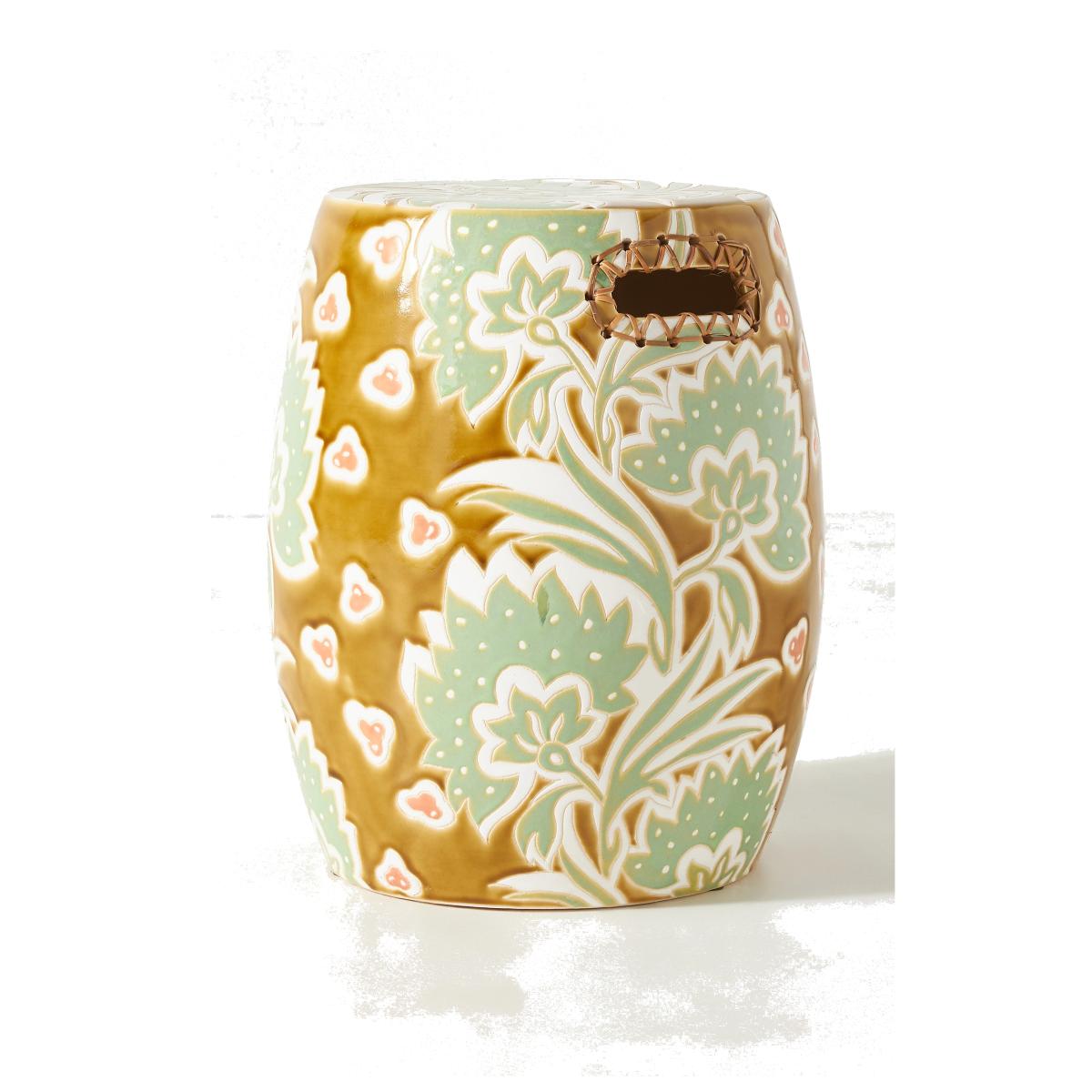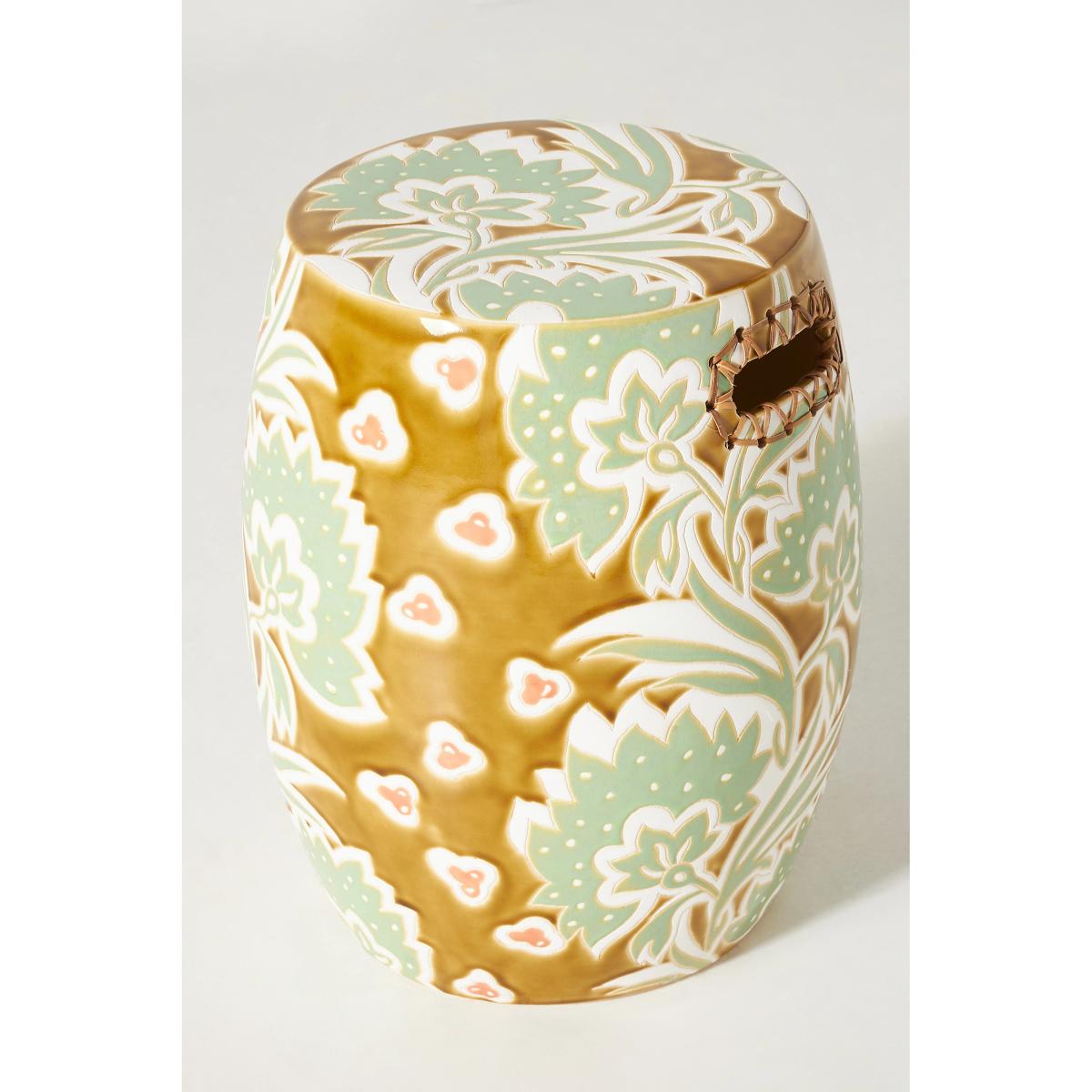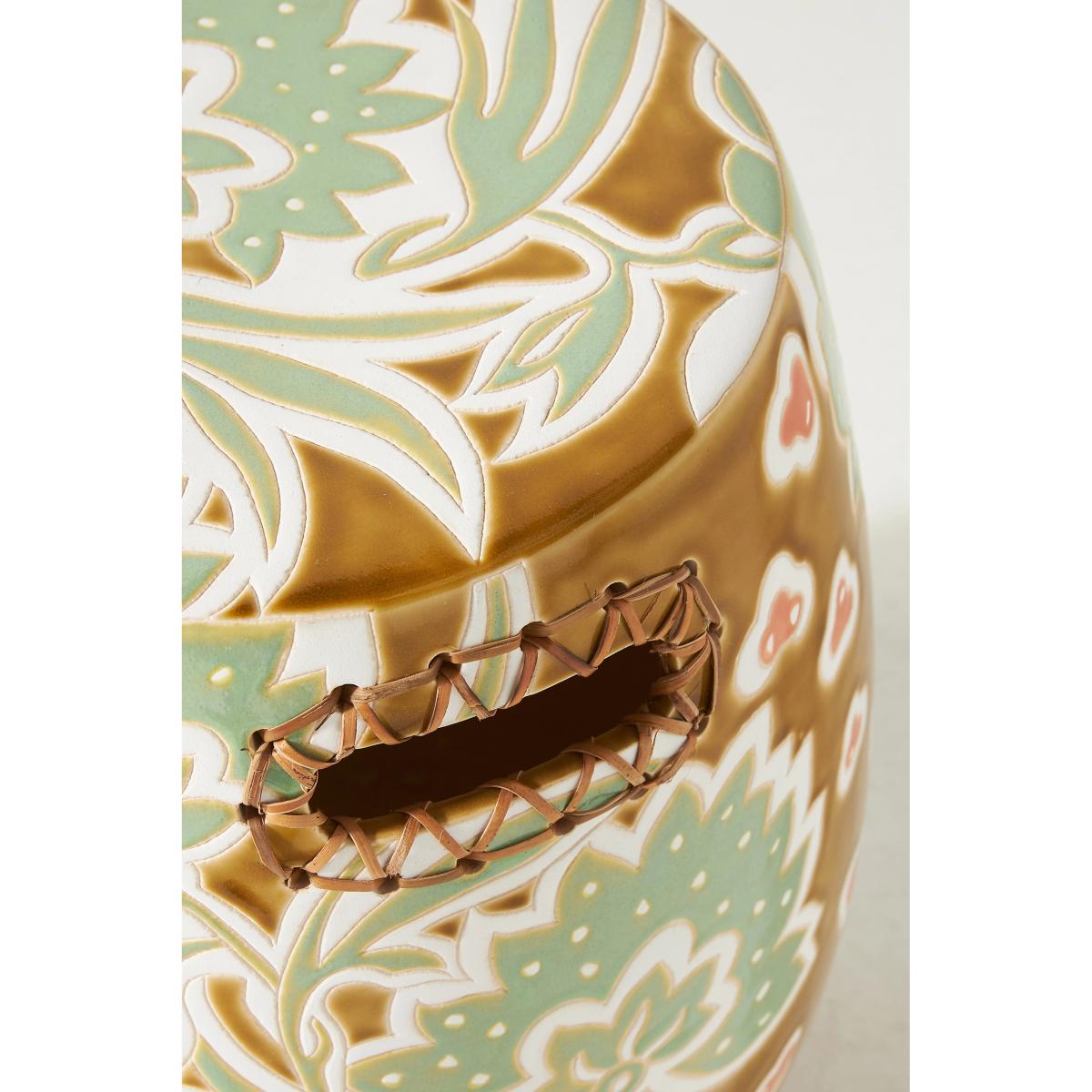 With a striking motif and rattan-accented handles, this handcrafted piece is a statement-making addition to any sun room, garden terrace, or living space. * Furniture pieces weighing over 30kg include delivery to your room of choice and packaging removal * This piece is suitable for indoor or outdoor use * Hand-glazed earthenware stool with rattan-woven handles * Please note, this piece is handmade and so no two are exactly alike * Wipe clean with soft cloth. Avoid chemical cleaners * Cover or store indoors during inclement weather or when not in use * No assembly required * Imported