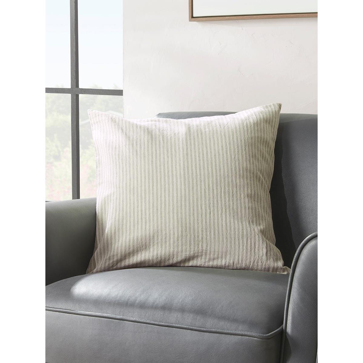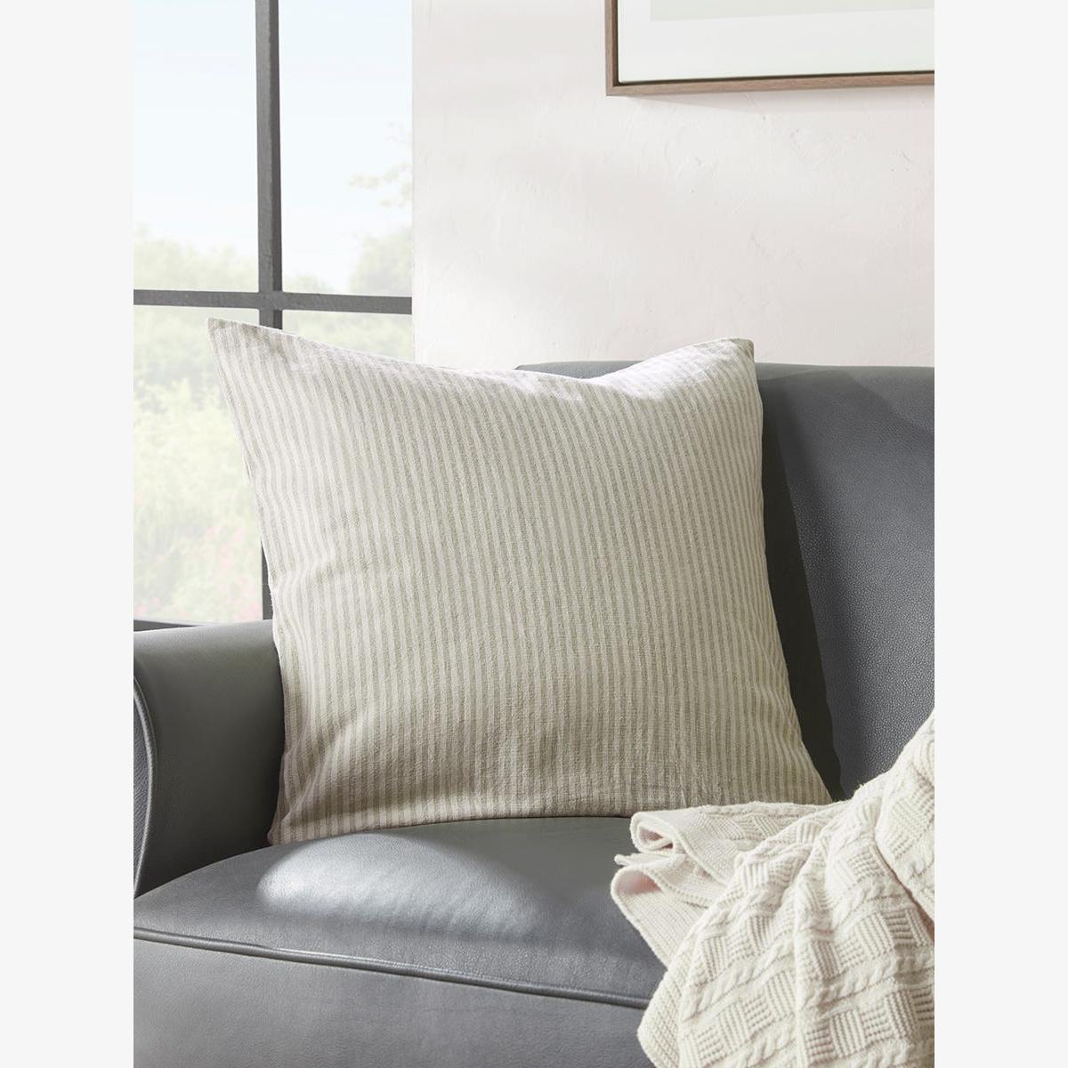 Softest sage green ticking stripes against a natural background bring a fresh spirit to this simple Josephine cotton cushion cover. An easy way to recharge a tired sofa or armchair, this cushion cover is also available in blue. This cushion cover is suitable for a 50cm x 50cm cushion pad which is available separately.