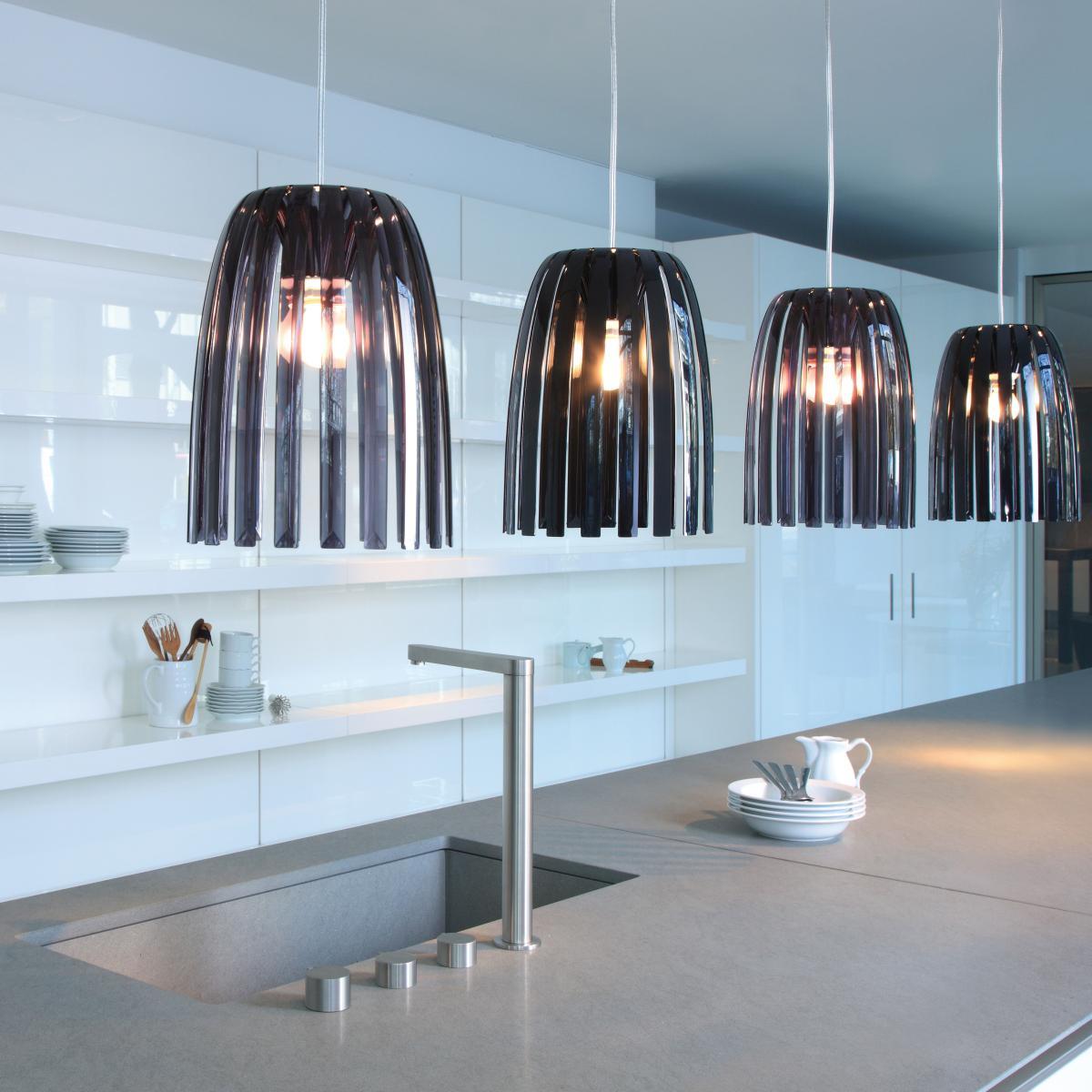 A sophisticated look for this lampshade formed by a cascade of thin plastic slats. The play of transparency, shade and light. Thanks to the convex shape of the slats, the material shines like crystal. So chic and shining! A graceful, airy and ultra-graphic structure that brightens up all your interiors with its original presence. The Josephine comes in different colours and different sizes. PLEASE NOTE: lampshade sold separately. Cable and socket set sold separately, available on our website.