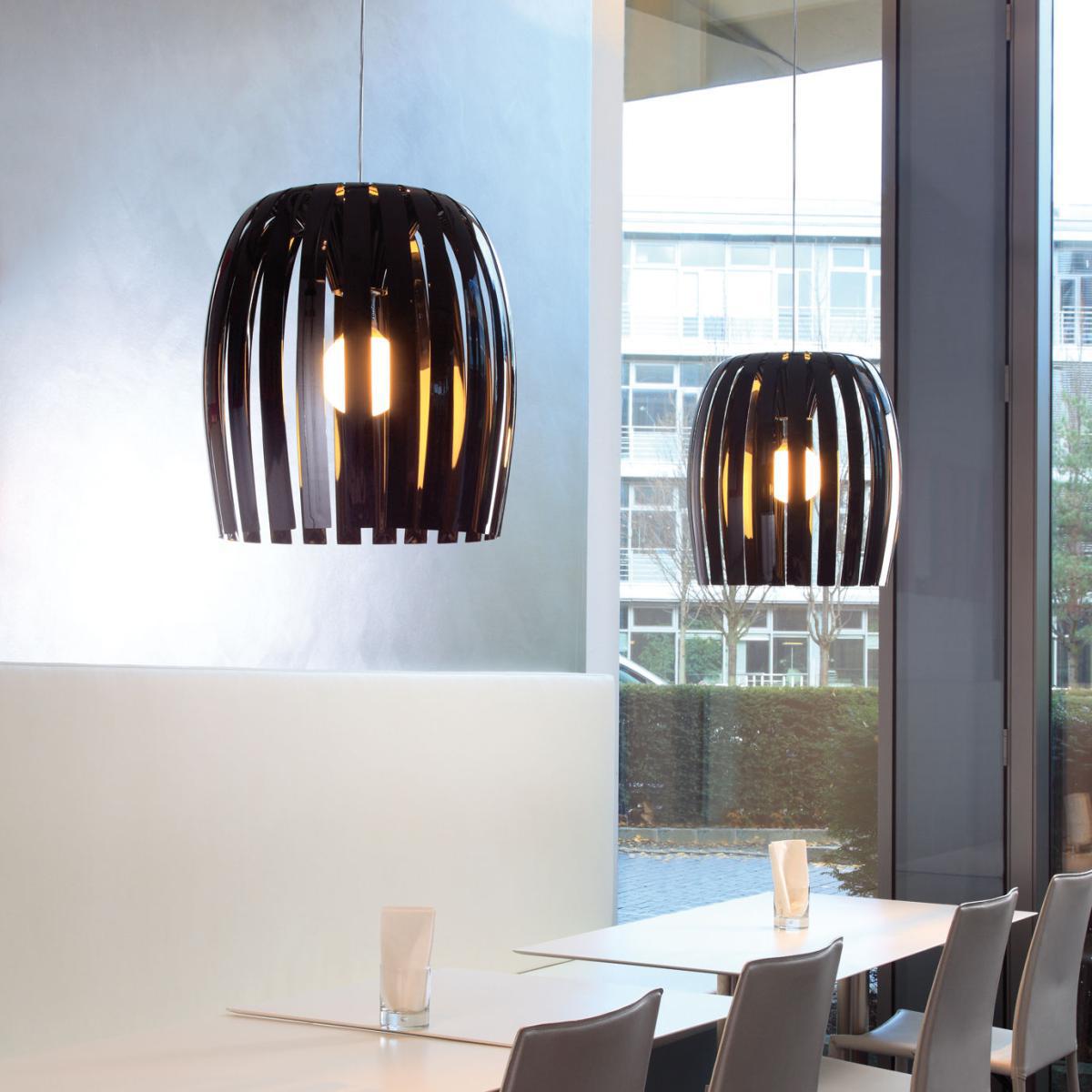 A sophisticated look for this lampshade formed by a cascade of thin plastic slats. The play of transparency, shade and light. Thanks to the convex shape of the slats, the material shines like crystal. So chic and shining! A graceful, airy and ultra-graphic structure that brightens up all your interiors with its original presence. The Josephine comes in different colours and different sizes. Lampshade sold separately. Cable and socket set sold separately, available on our website. Available in several colours.