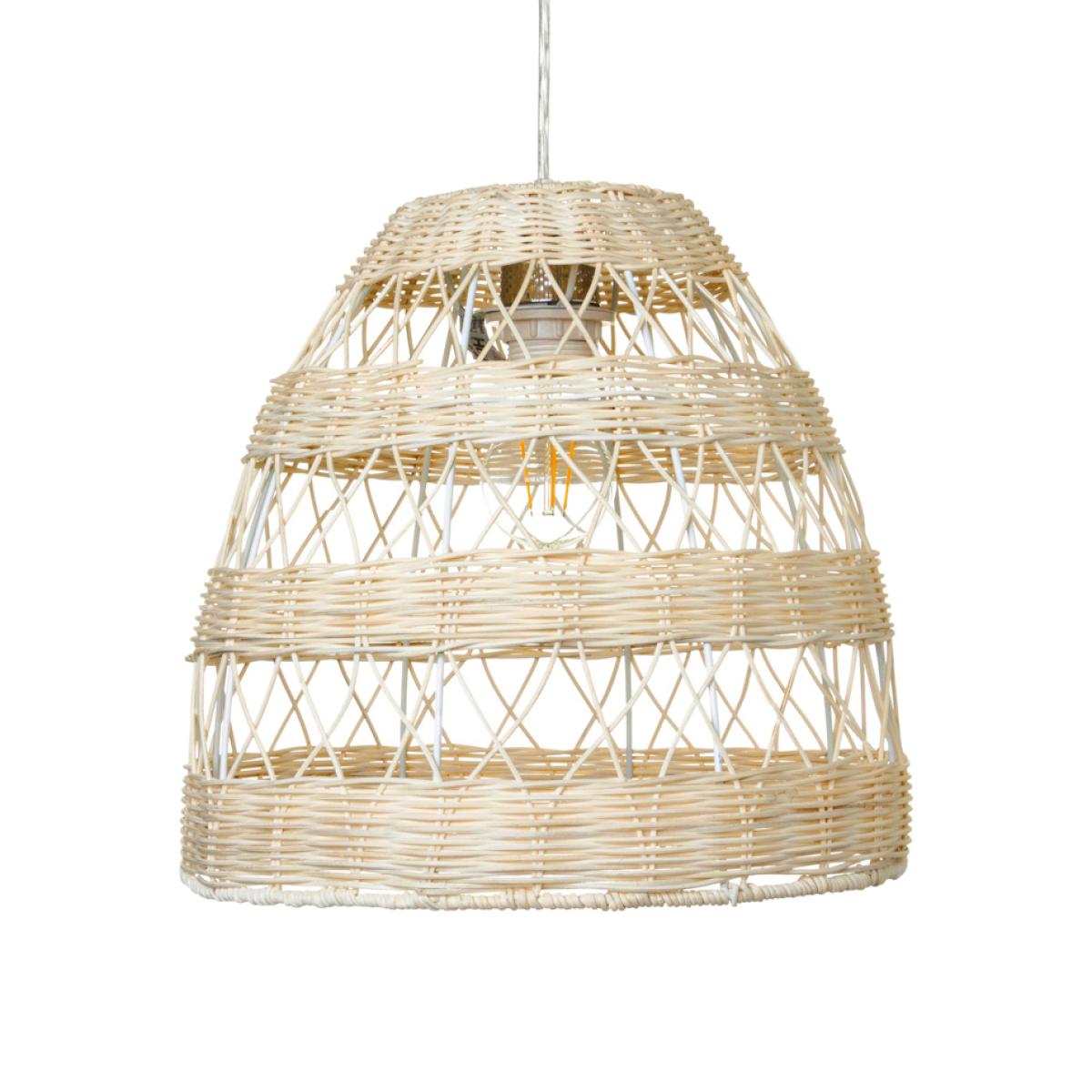 Combine bohemian and contemporary styling with the Josie Rattan Easy fit Shade in Natural. With a unique dome shape and abstract cut out design makes this easy fit shade an eye-catcher and will wow your guests. To install, simply unbox the lamp shade and attach to any pre-existing light fitting.
