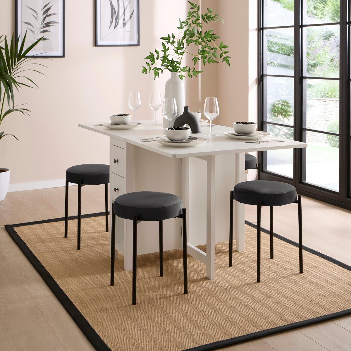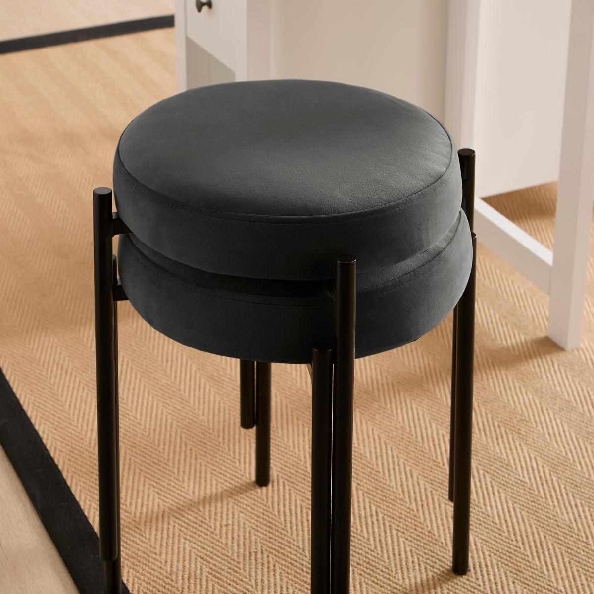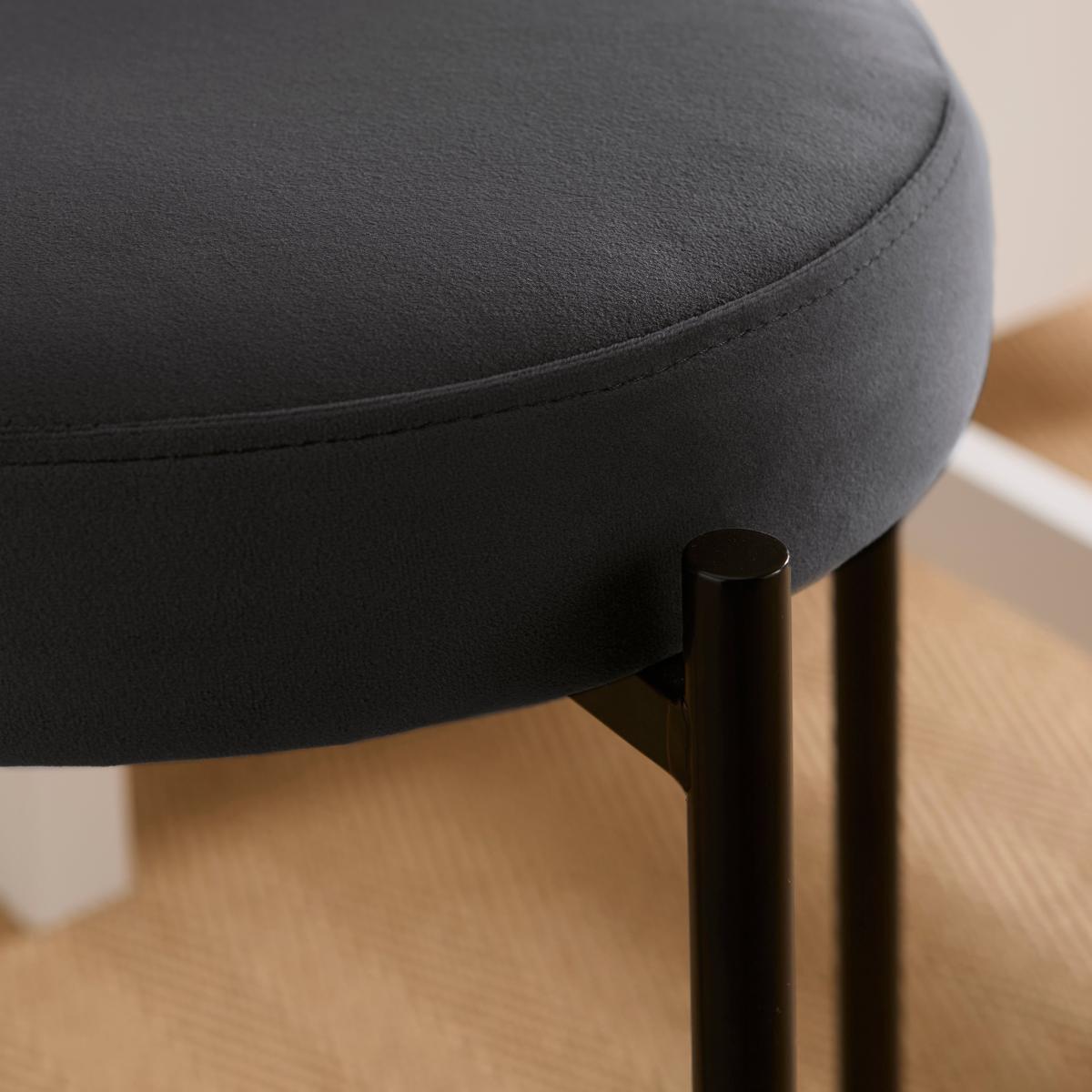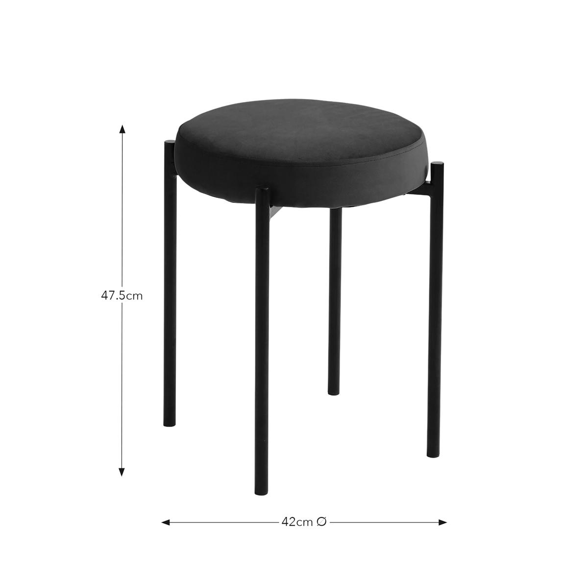 I love this stool for its sleek and versatile look. The velvet finish adds a touch of sophistication, making it a great option for contemporary or eclectic interiors. It works well in kitchens or breakfast bars, especially when paired with monochrome or bold colour schemes, as the black velvet provides a subtle contrast. Practical styling tips include grouping a pair around a small table for a cosy seating area or using it as an accent piece in a dressing room or vanity setup. Its understated elegance means it can be easily integrated into various room types without overpowering the existing decor.