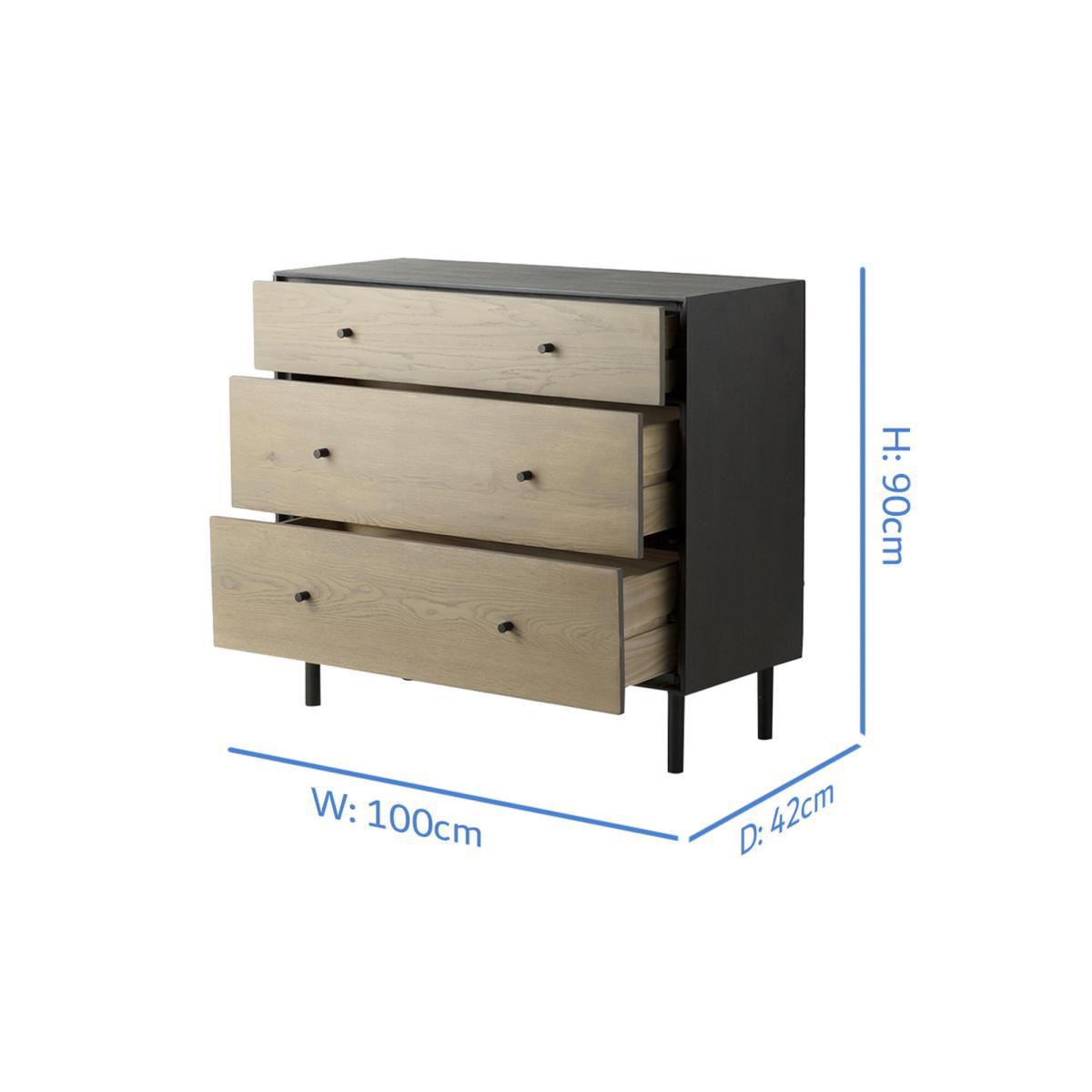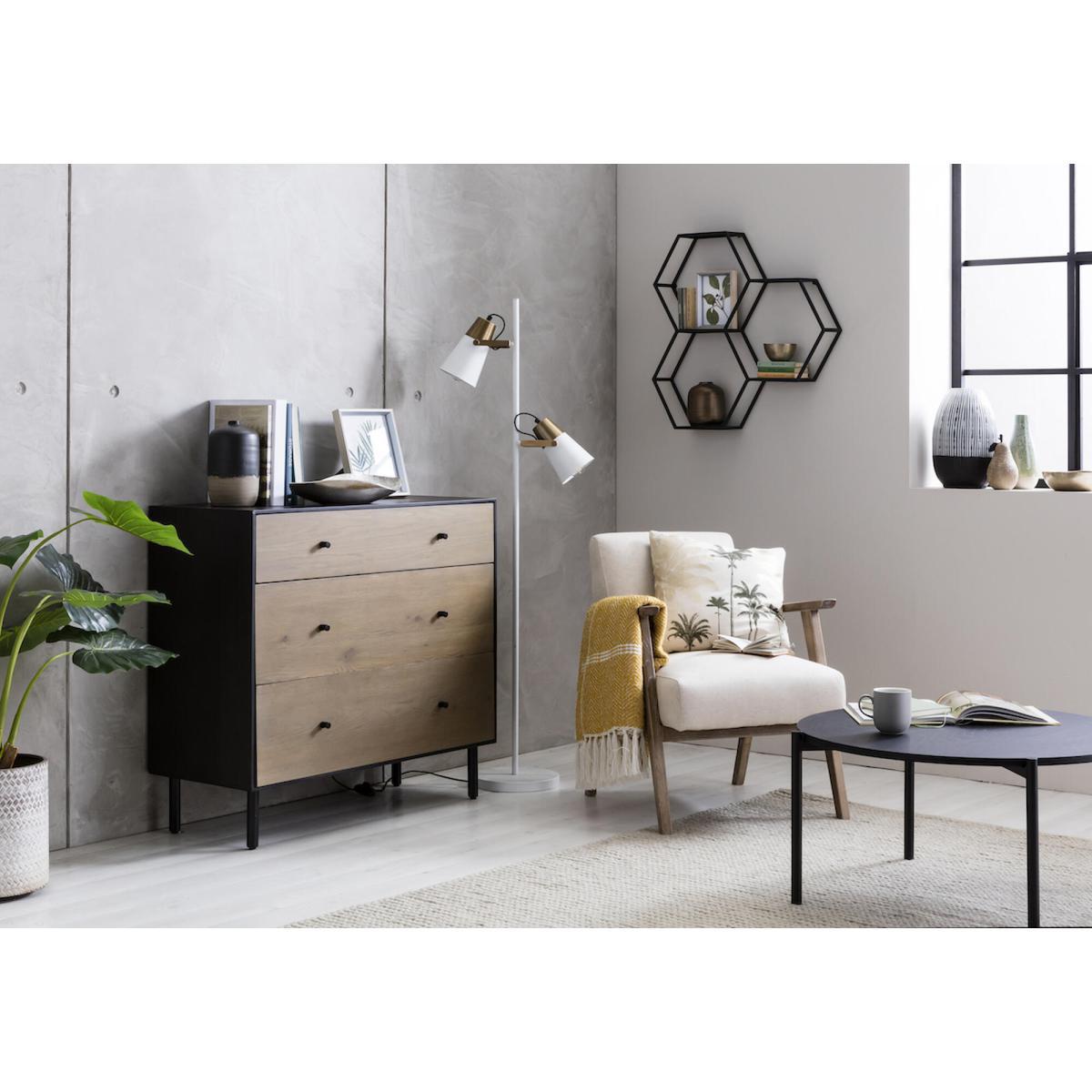 I love this chest because of its clean, straightforward design and timeless oak finish, which makes it incredibly versatile. It works well in both modern and Scandi-inspired interiors, adding warmth without feeling bulky. Practical styling tips include using the top surface for organising everyday essentials or decorative items, while the drawers are perfect for tidying away clothes, linens, or small accessory collections. To keep things looking fresh, consider pairing it with black or matte metal accessories to echo the drawer pulls, or adding greenery for a touch of colour. Its understated look means it can seamlessly fit into bedrooms, living rooms, or even hallways for a functional yet attractive storage solution.