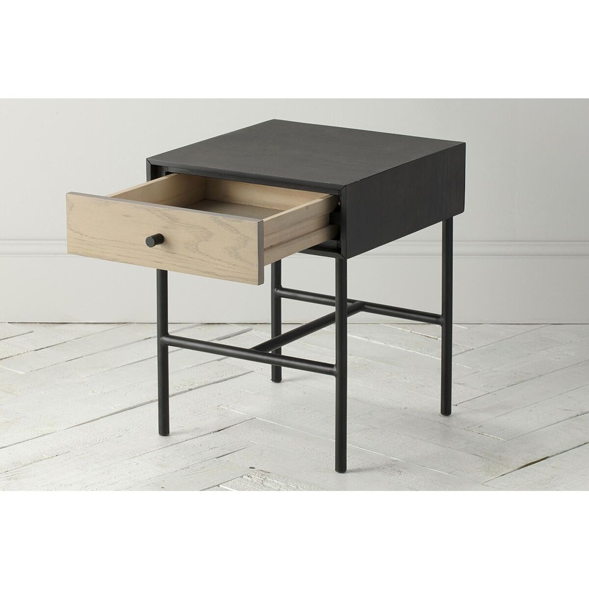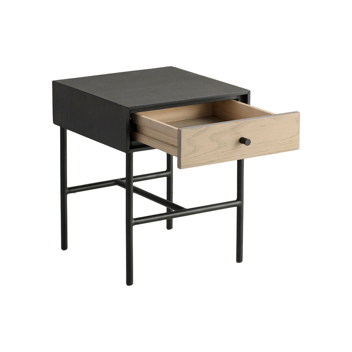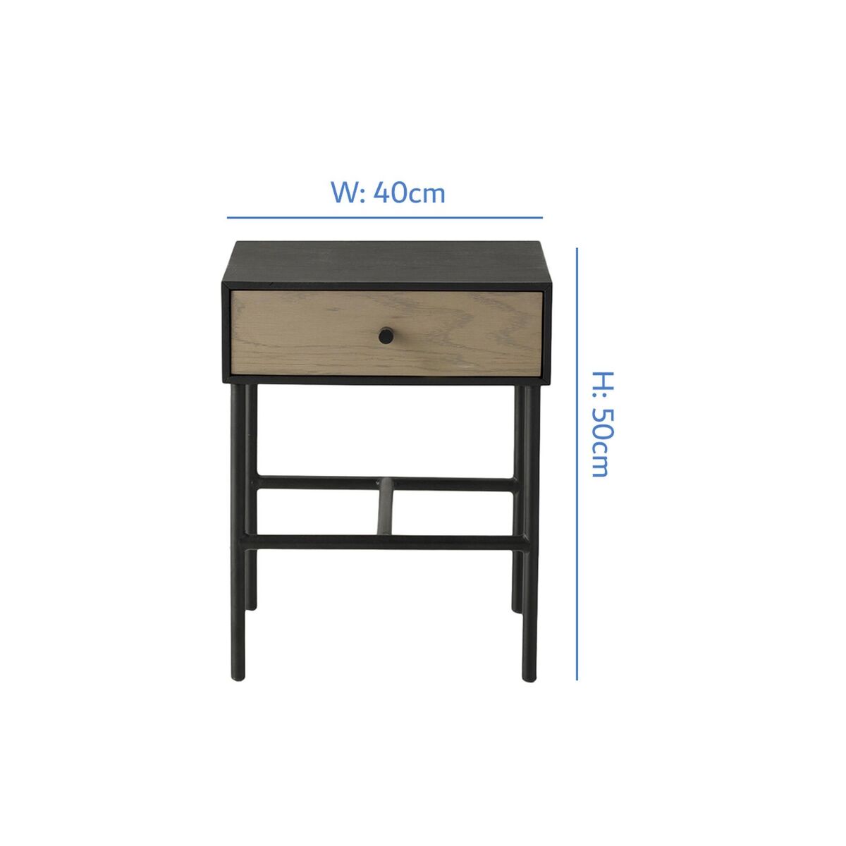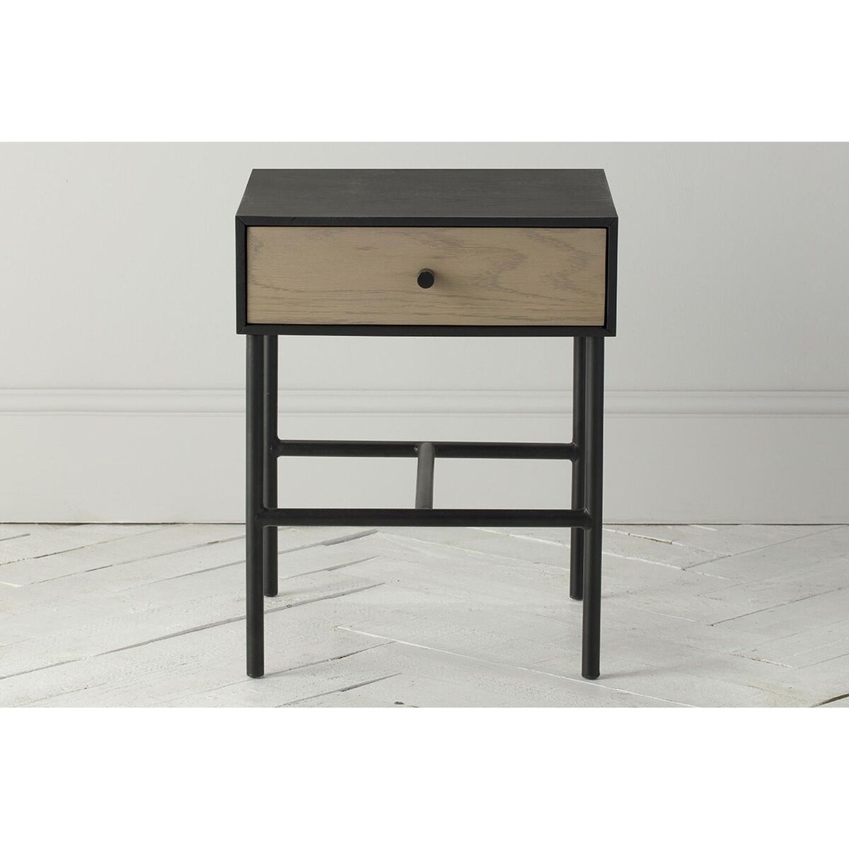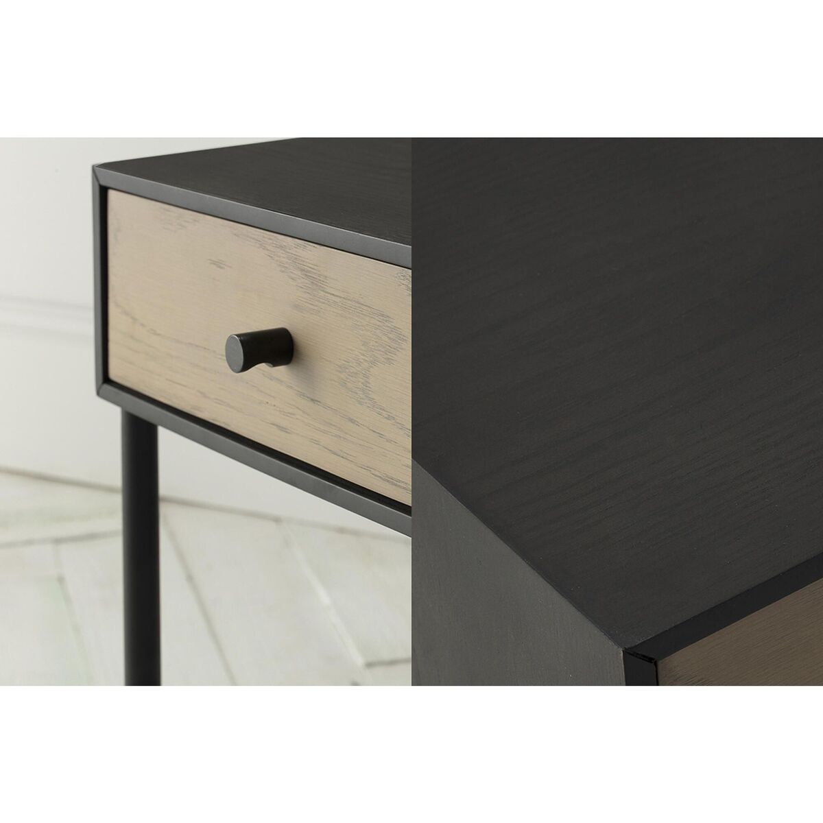 I love the Joss oak table for its simple mix of pale oak veneer and slim black steel frame - it suits Scandi, industrial or contemporary schemes equally well. The compact drawer gives you hidden storage beside a sofa or bed without eating up floor space. Keep the top tidy with a small lamp and a neat stack of books, then add a textured ceramic pot or low vase for interest. The open underframe means you can layer a slim rug beneath to maintain a light, airy feel in smaller rooms.