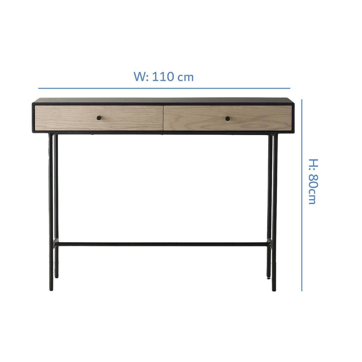 I’m a fan of the Joss oak console for its clean lines and mix of natural oak drawer fronts with a slim black metal frame. It slots straight into modern Scandi, industrial or pared-back urban interiors, where its pared-down look adds function without bulk. Top styling tips: keep the surface uncluttered with a pair of tapered candles and a low planter to emphasise the slim profile. Tuck keys and small essentials in the drawers, then echo the oak tone elsewhere - think a matching picture frame or wooden bowl on a nearby shelf - to pull the scheme together.