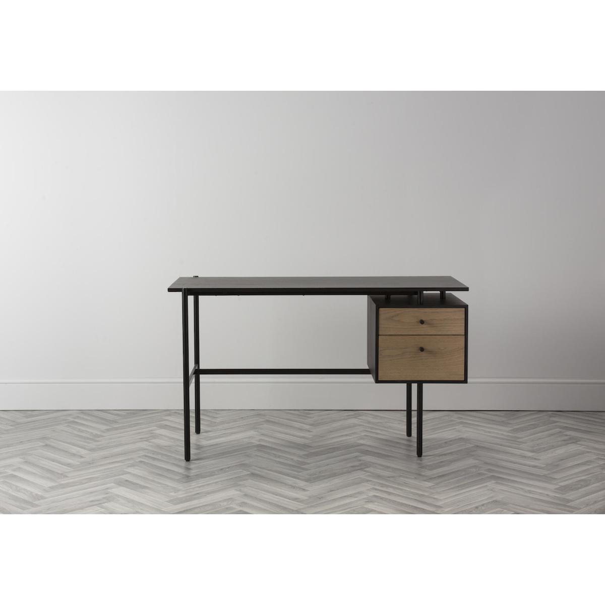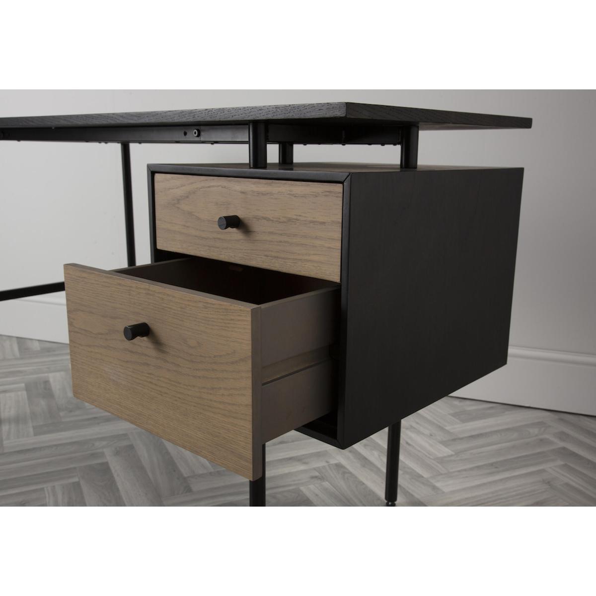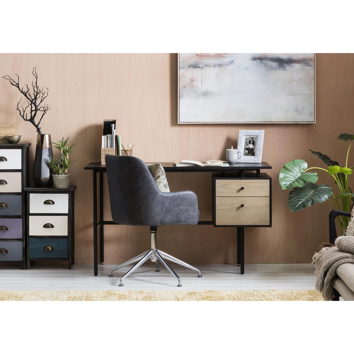 I’m a fan of this little oak-and-black desk for its clean lines and sturdy metal frame - it slips straight into Scandi, industrial or pared-back contemporary rooms. The two slim drawers are handy for stashing chargers, stationery and loose paperwork, keeping the desktop clear for work or display. Styling tip: anchor it with a slim task lamp and a small planter to introduce a touch of greenery, then use a woven tray or metal pen pot to corral everyday items. If you need extra shelf space, pair it with a floating shelf above in black metal or light wood to mirror the desk’s materials.