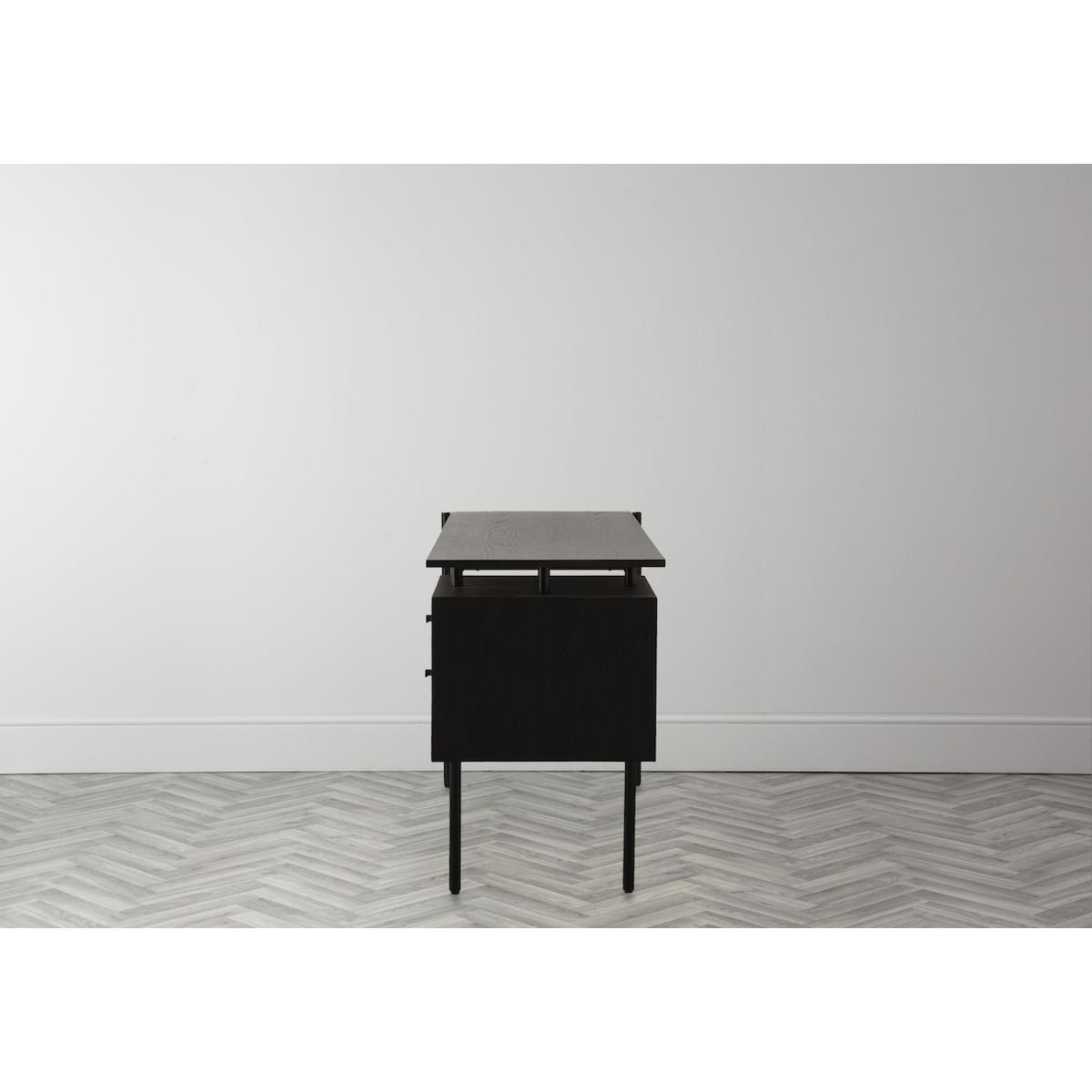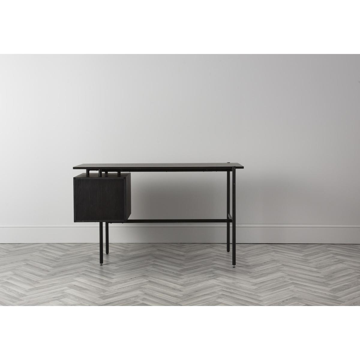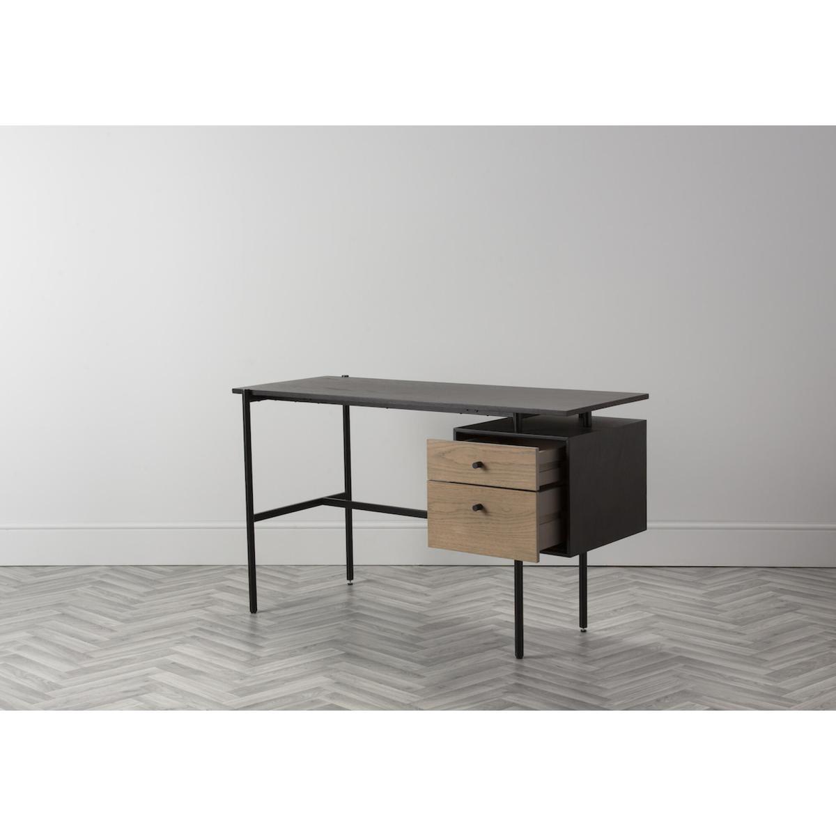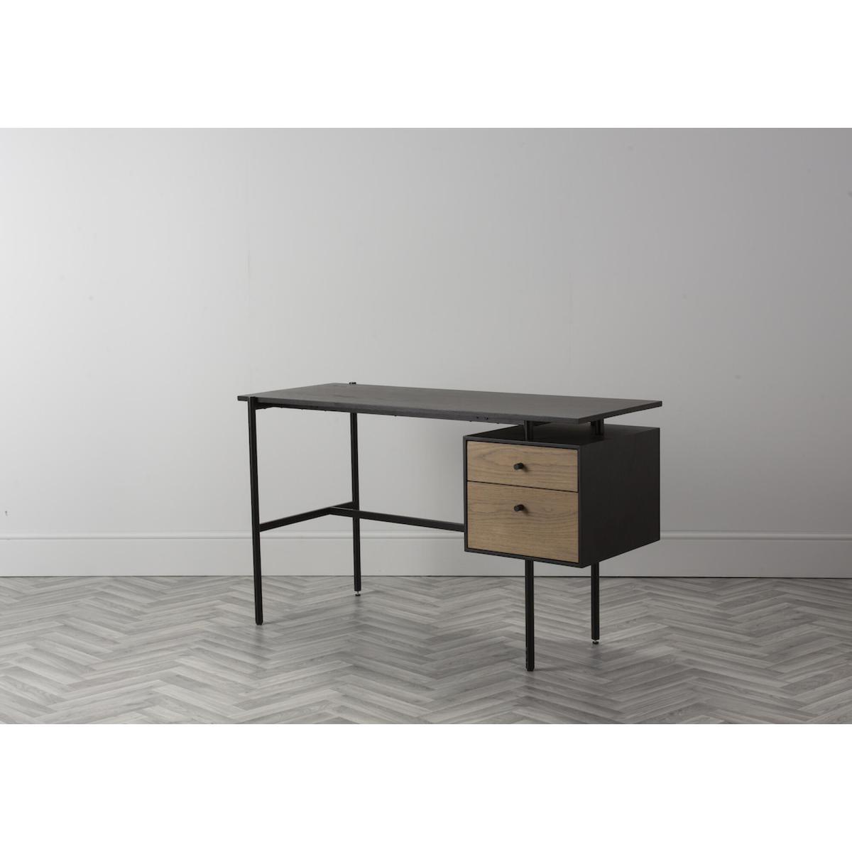 I’m a fan of this little oak-and-black desk for its clean lines and sturdy metal frame - it slips straight into Scandi, industrial or pared-back contemporary rooms. The two slim drawers are handy for stashing chargers, stationery and loose paperwork, keeping the desktop clear for work or display. Styling tip: anchor it with a slim task lamp and a small planter to introduce a touch of greenery, then use a woven tray or metal pen pot to corral everyday items. If you need extra shelf space, pair it with a floating shelf above in black metal or light wood to mirror the desk’s materials.