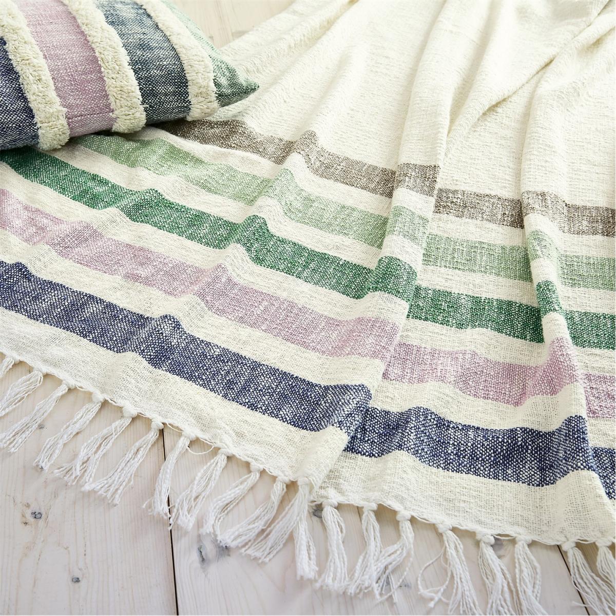 I love this throw for its charming, coastal-inspired vibe and versatile colour palette. It works particularly well in relaxed, country, or nautical interiors, adding a touch of softness and colour without overpowering the space. Practical styling tips include draping it casually over the arm of a sofa or side of a bed to create an inviting, layered look. It also layers beautifully with neutral or pastel bed linen, adding a cozy, tactile element. This throw is ideal for adding colour and pattern to living rooms or bedrooms while remaining easy to care for and seasonally flexible.