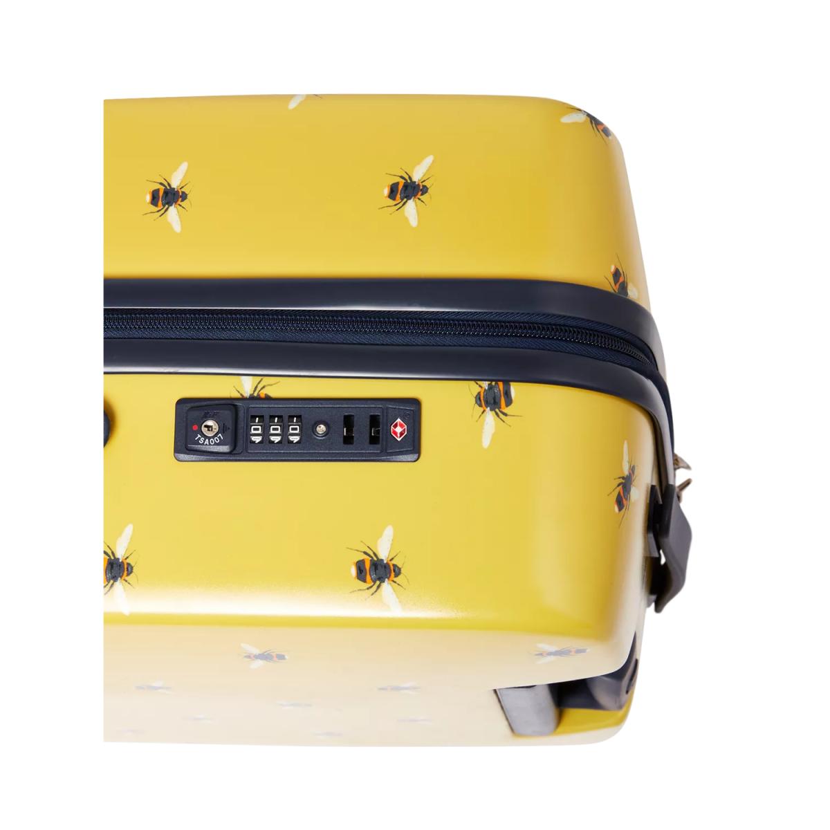 It's all about the bees with the Joules Botanical Bee print hard-side luggage collection. This suitcase is not only super stylish but fantastically functional. The ultra-lightweight, durable, smooth matte shell features the iconic Joules heritage bee print. The streamlined design and four smooth rolling double wheels aid manoeuvrability. Comes with internal organisation and a combination lock. We love the distinctive colour pop fourth wheel.