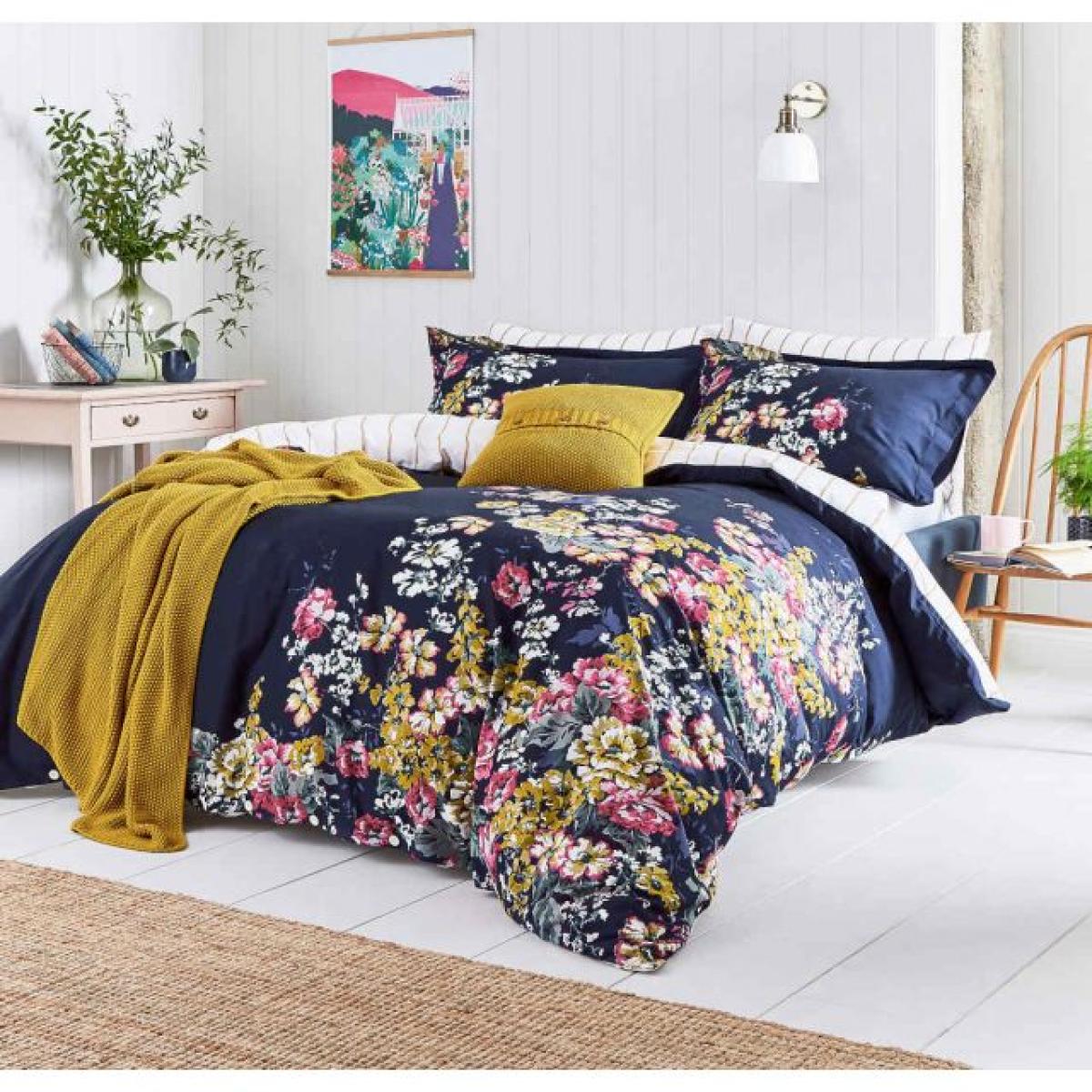 Bring the beauty of an English country garden into your bedroom with this charming duvet cover. Created in super smooth cotton percale, it features a unique to Joules floral print at one side and an equally exclusive pattern to the reverse. Piped edging adds an extra touch of texture. Matching oxford pillowcase included in sets Standard striped pillowcase also sold in pairs separately if needed. Machine washable The scatter cushion and throw pictured here are not included All screens vary in colour reproduction and whilst every effort has been made to display the colour as accurately as possible it is for guidance only.