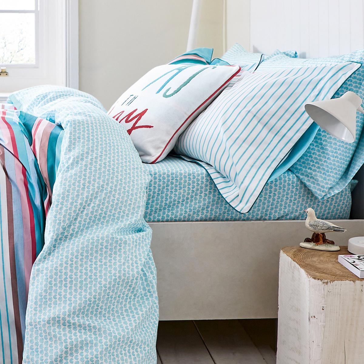 Joules Coastal Stripe 100% Cotton Standard Pillowcase Pair Aqua