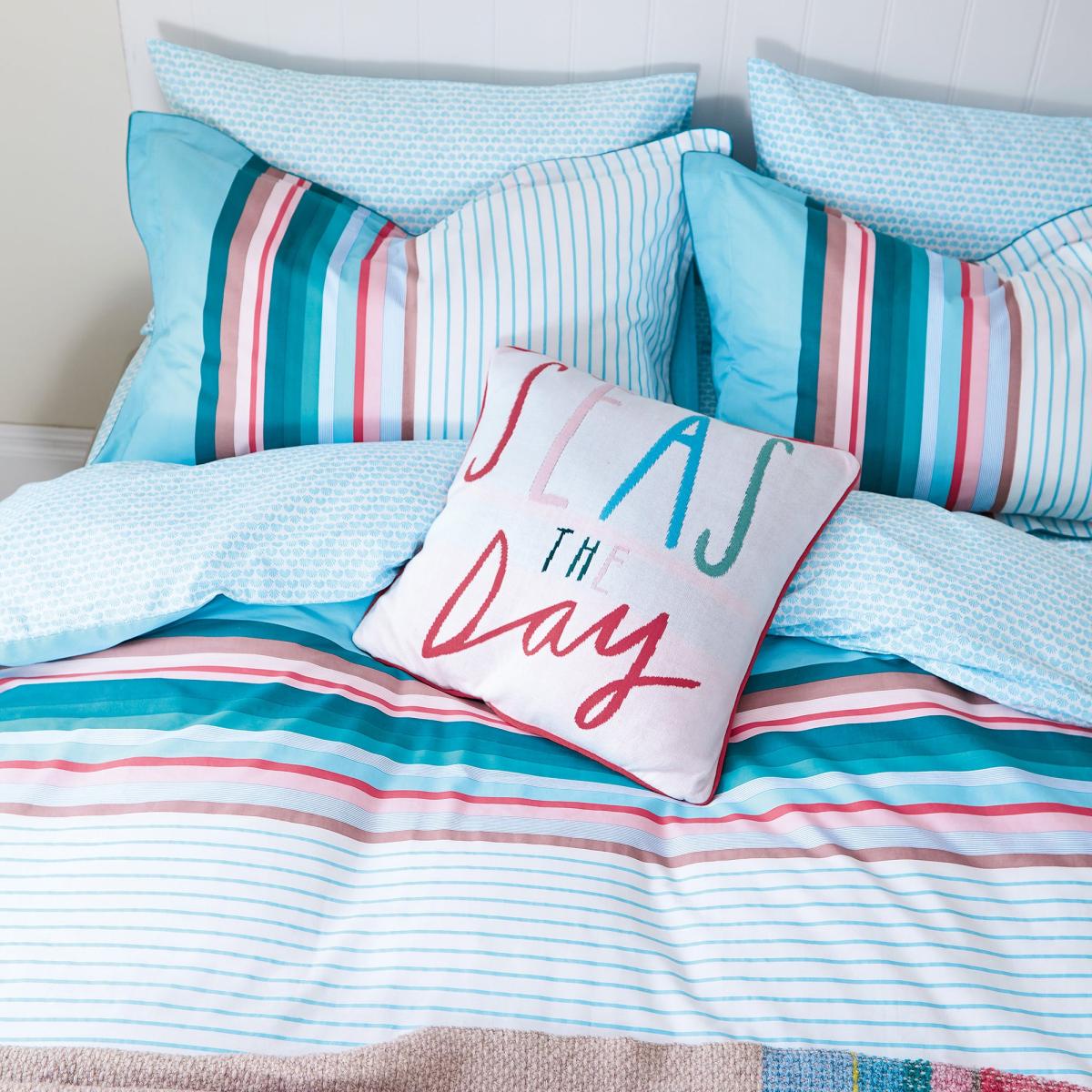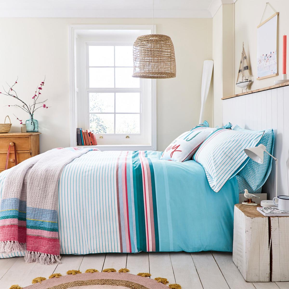 The Joules Coastal Stripe pillowcase pair in aqua is a great choice for adding a fresh, seaside-inspired feel to a bedroom. I love its vibrant yet soothing colour, perfect for creating a relaxing centrepiece in coastal, nautical, or even modern interiors. It works well layered with natural textures like linen or wicker, as well as paired with neutral or white bedding for a crisp, clean look. Practical styling tips include mixing and matching with complementary aqua or soft pastel hues, or combining with striped or patterned cushions for a cohesive aesthetic. Its 100% cotton fabric adds comfort and breathability, making it a versatile choice for everyday use.