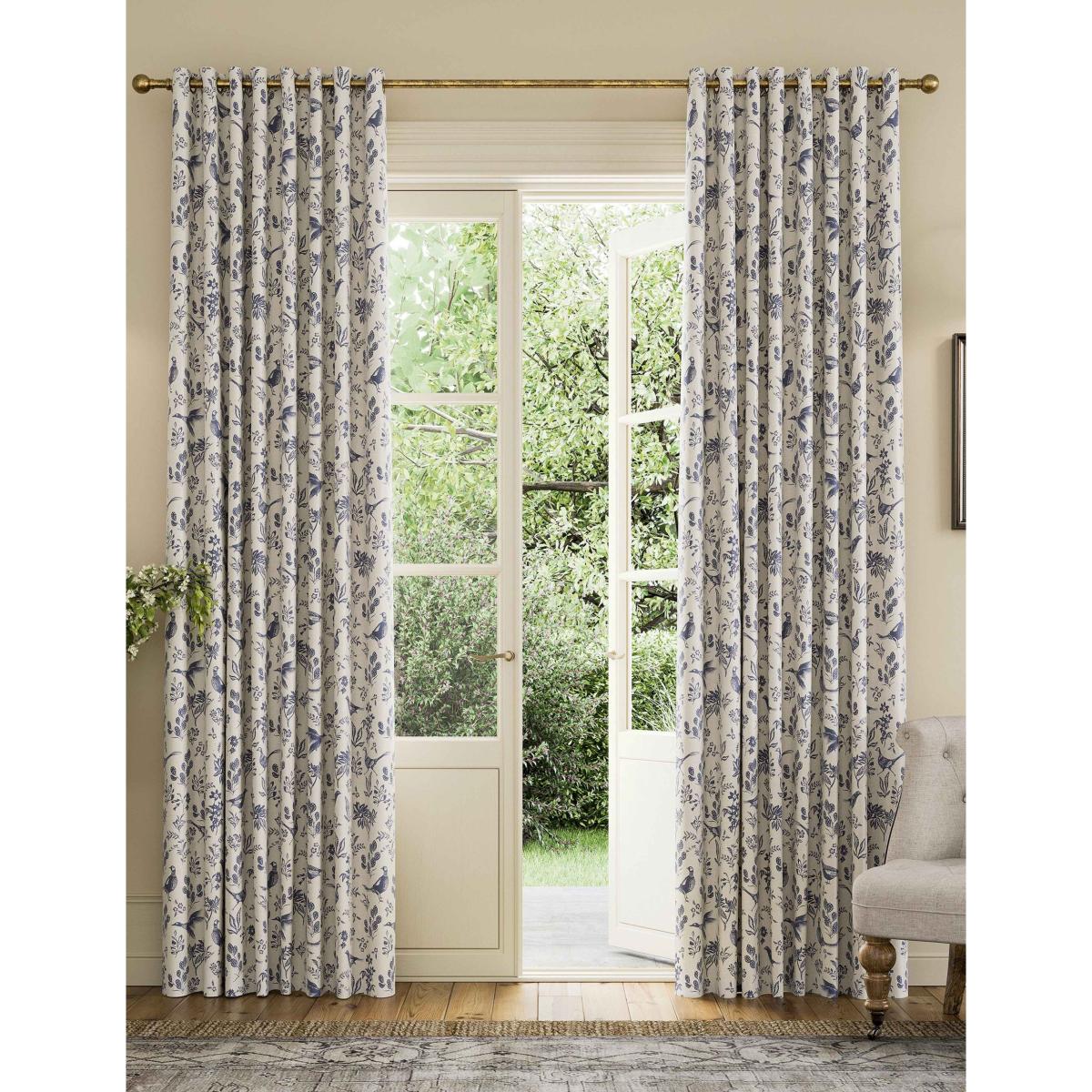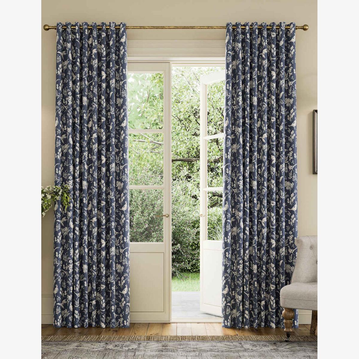 Joules Festival Pheasants Pure Cotton Eyelet Blackout Curtains Navy Mix