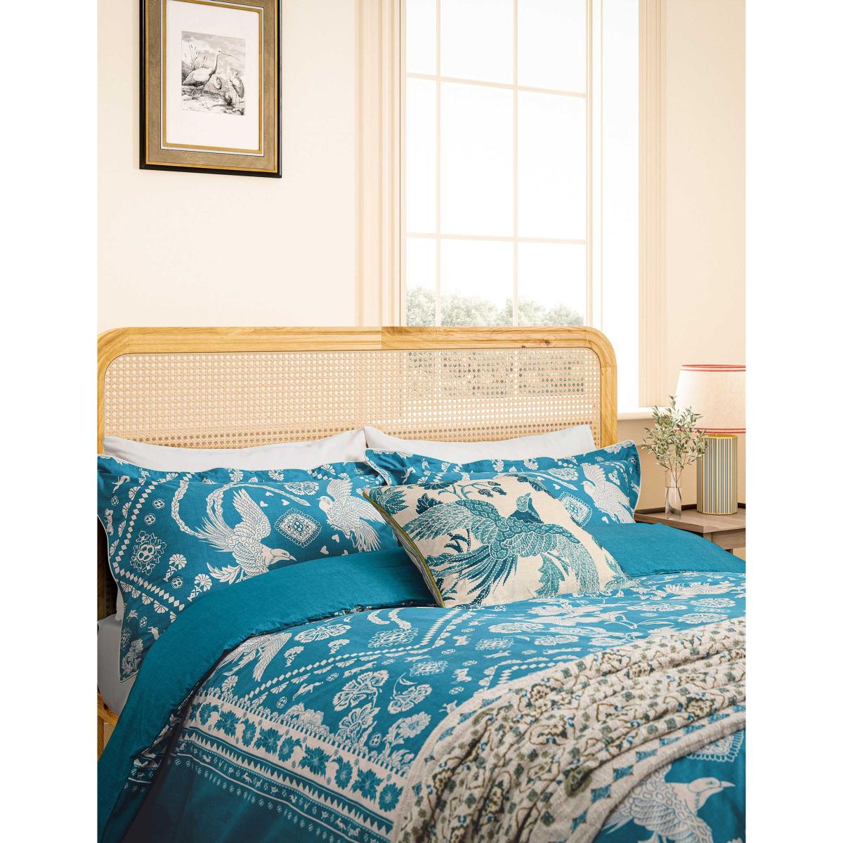 Joules Hidcote Birds Square Cushion Blue Mix