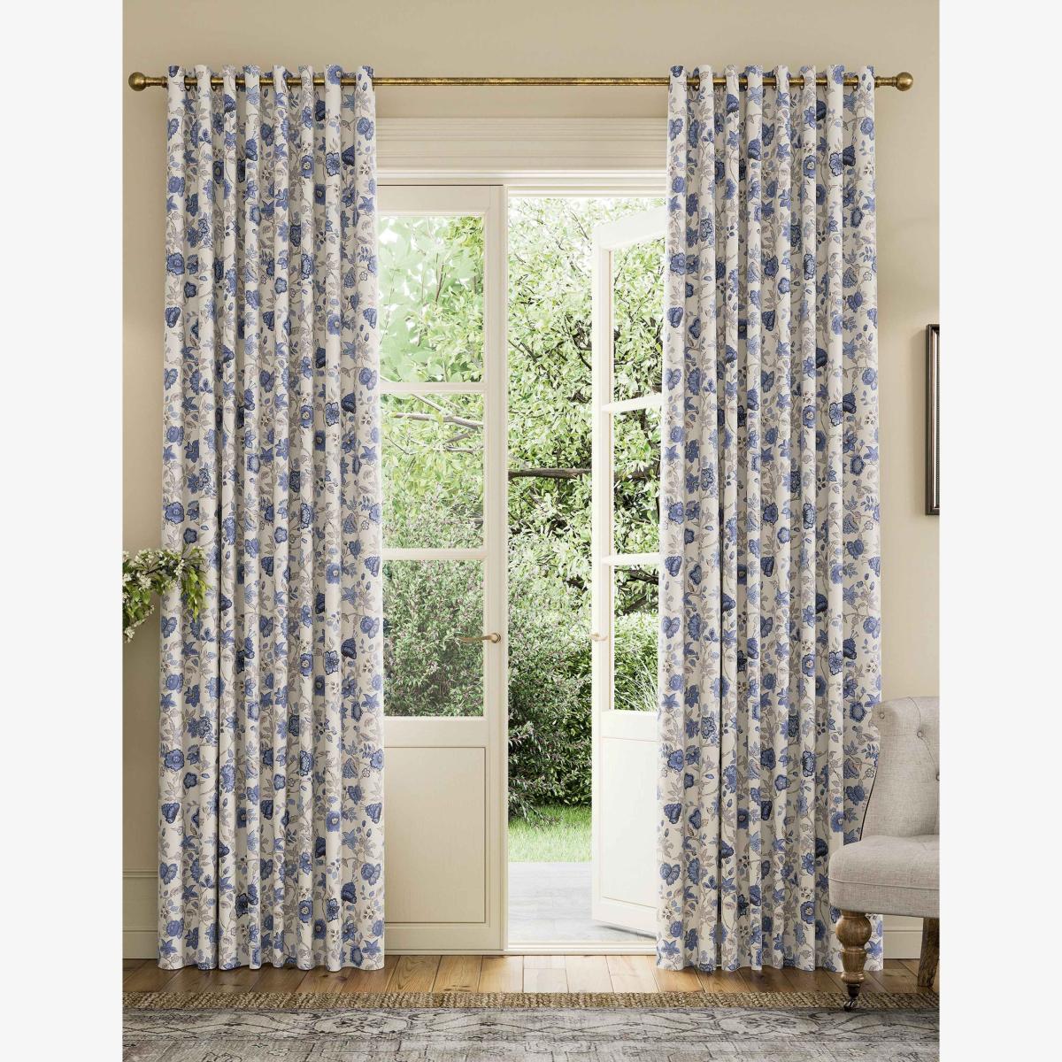 Joules Indienne Pure Cotton Eyelet Blackout Curtains Blue Mix