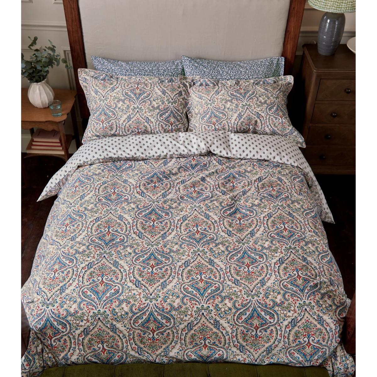 Brighten your bedroom with the Joules Paisley Duvet Cover Set in Multi, showcasing a colourful and intricate paisley pattern that adds an elegant touch to your space. Add an air of opulence and luxury into your home with the Paisley printed bedding set. The perfect set for this season, it features an ornate paisley print with a rich and cosy colour palette of reds, royal blues, greens and fresh cream that will elevate your bedroom. On the reverse is a smaller-scale floral foulard print which mirrors the same colours set against a cream background, giving you two prints to play with. It's cut from quality cotton percale and has a 180 thread count for a soft and comfortable slumber. Features: 180 thread count 100% cotton percale Double, King and Super King duvet includes a pair of pillowcases Care Instructions: Machine Washable Please note All screens vary in colour reproduction and whilst every effort has been made to display the colour as accurately as possible it is for guidance only.