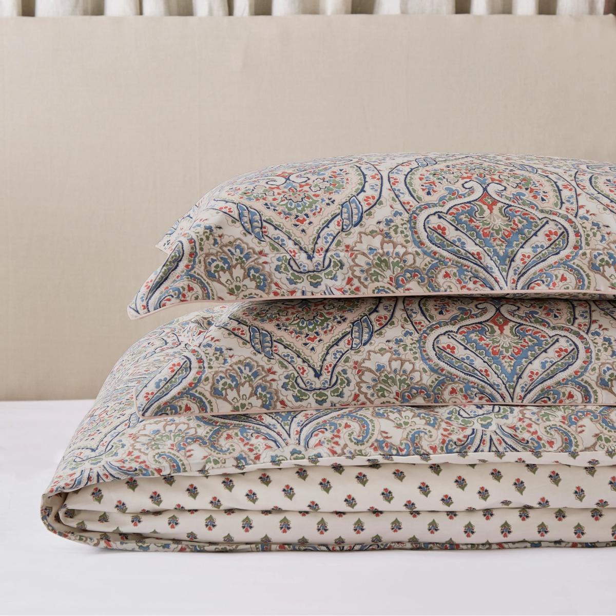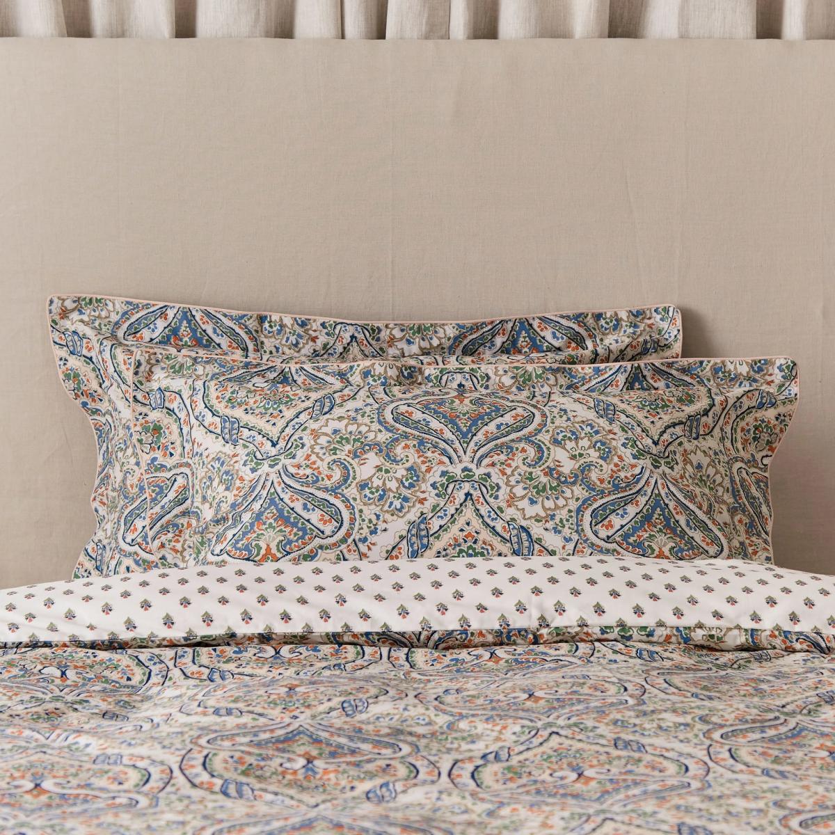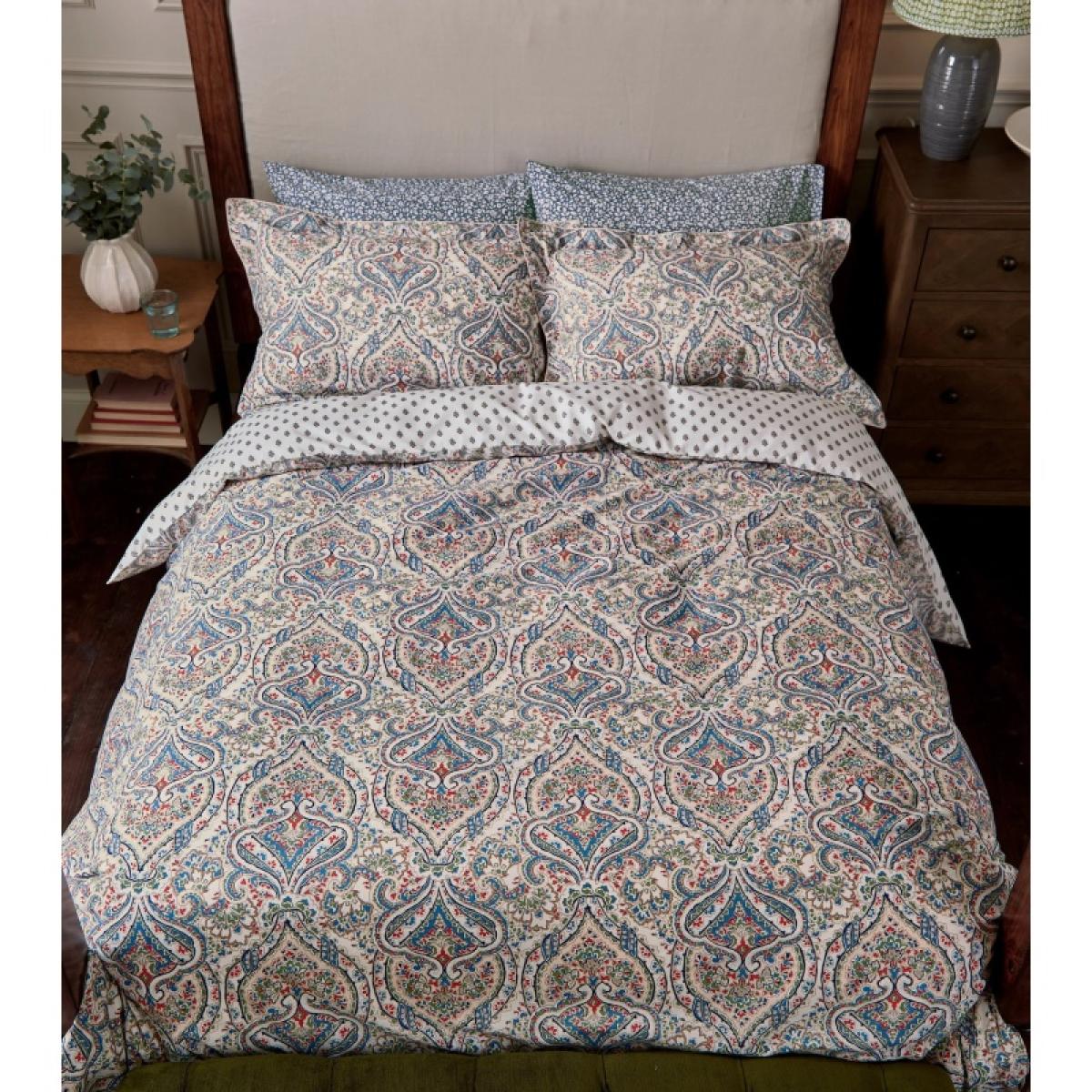 Brighten your bedroom with the Joules Paisley Duvet Cover Set in Multi, showcasing a colourful and intricate paisley pattern that adds an elegant touch to your space. Add an air of opulence and luxury into your home with the Paisley printed bedding set. The perfect set for this season, it features an ornate paisley print with a rich and cosy colour palette of reds, royal blues, greens and fresh cream that will elevate your bedroom. On the reverse is a smaller-scale floral foulard print which mirrors the same colours set against a cream background, giving you two prints to play with. It's cut from quality cotton percale and has a 180 thread count for a soft and comfortable slumber. Features: 180 thread count 100% cotton percale Double, King and Super King duvet includes a pair of pillowcases Care Instructions: Machine Washable Please note All screens vary in colour reproduction and whilst every effort has been made to display the colour as accurately as possible it is for guidance only.