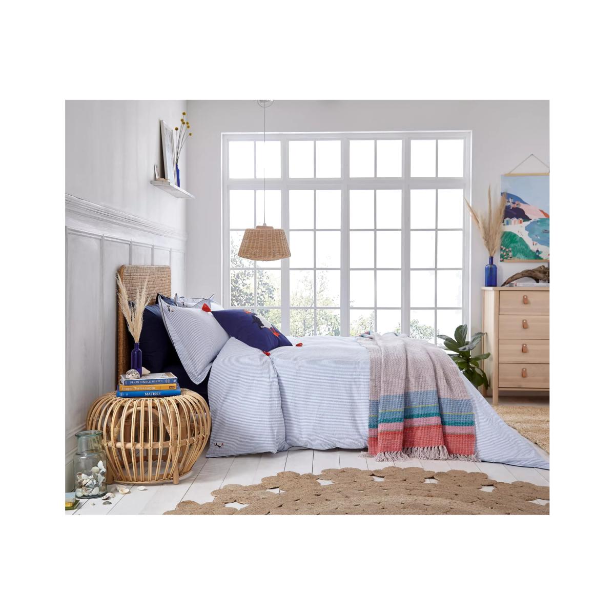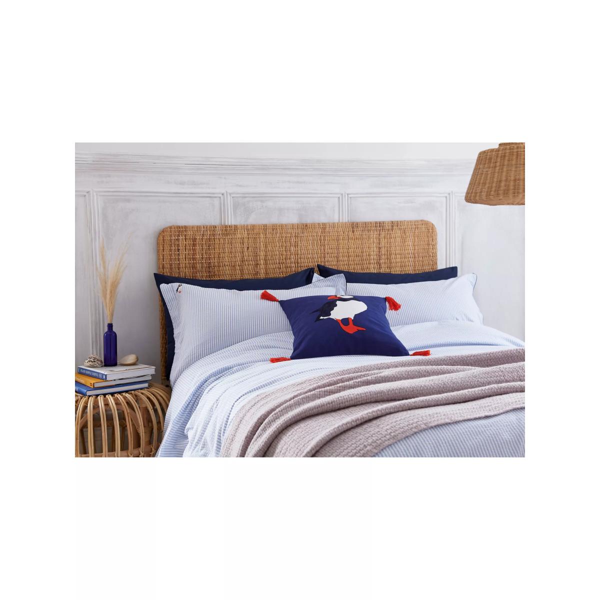 From the fabric that's been used, to the hidden embroidery that features on it, this is a duvet cover that's truly been made with warmer months in mind. The seersucker fabric is a thin, lightweight material that when artistically woven creates its distinctive wrinkled look, so it's perfect for keeping cool in the summertime. Adorning the fabric are thin vertical stripes that are in a fresh blue and white palette. A colourful, embroidered puffin perched in the corner will leave you dreaming of the coast. The single set comes with one Oxford pillowcase. All other sizes come with two Oxford pillowcases. Joules are proud to be members of the Better Cotton Initiative (BCI) and are pleased to say that this set has been made using sustainably sourced cotton. Bedding sizes To fit duvet/pillow size (cm) Oxford pillowcase, L75 x W50cm (excluding trim) Single duvet cover, L200 x W140cm Double duvet cover, L200 x W200cm King duvet cover, L220 x W225cm Super king duvet cover, L220 x W260cm