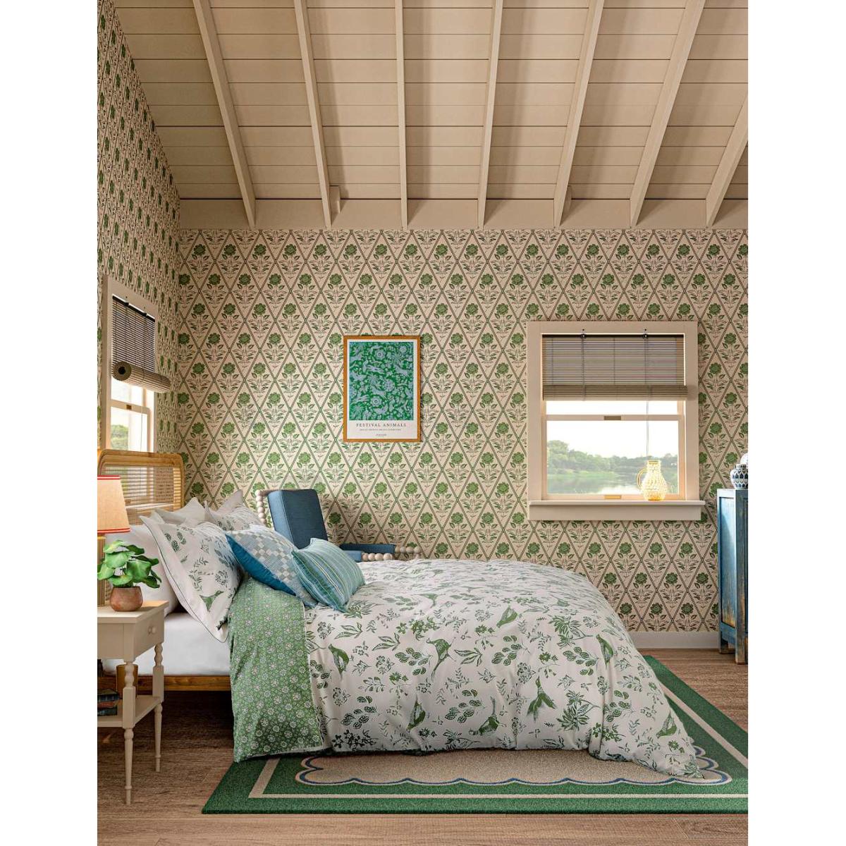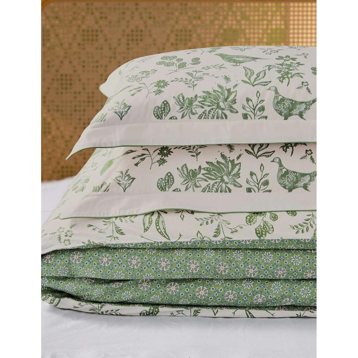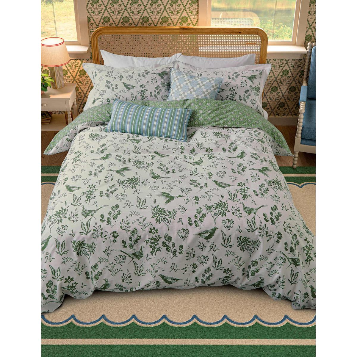 Joules Pure Cotton Festival Pheasants Bedding Set - DBL - Green, Green