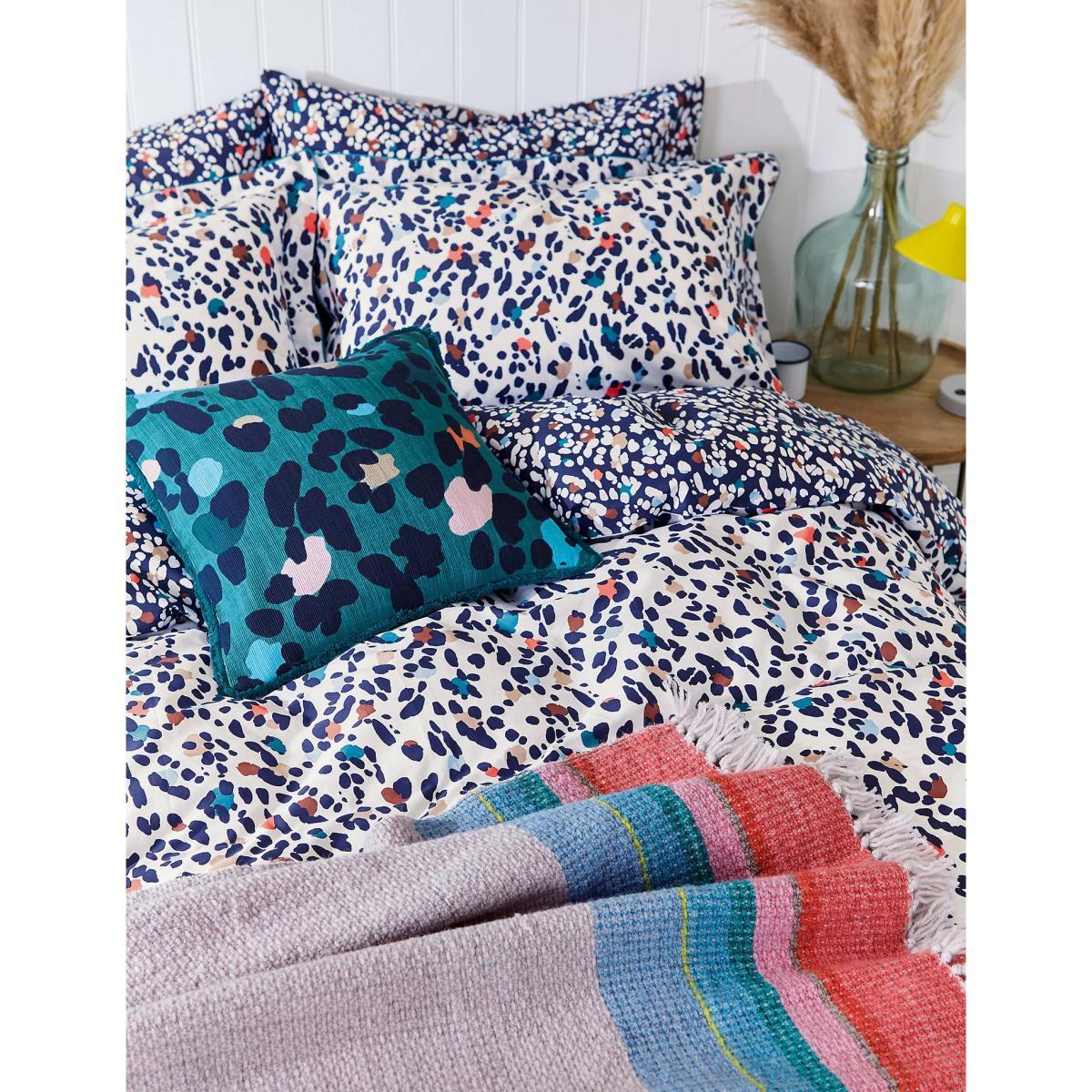 Decorated with a colourful leopard print, this Joules cushion will bring extra zing to your sofa or bed. The cover of this square cushion is crafted from pure cotton. It's finished with fringed edges for bonus style points.