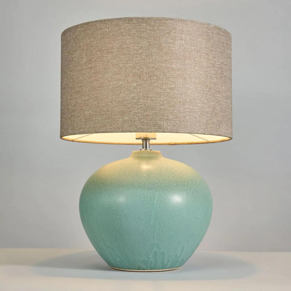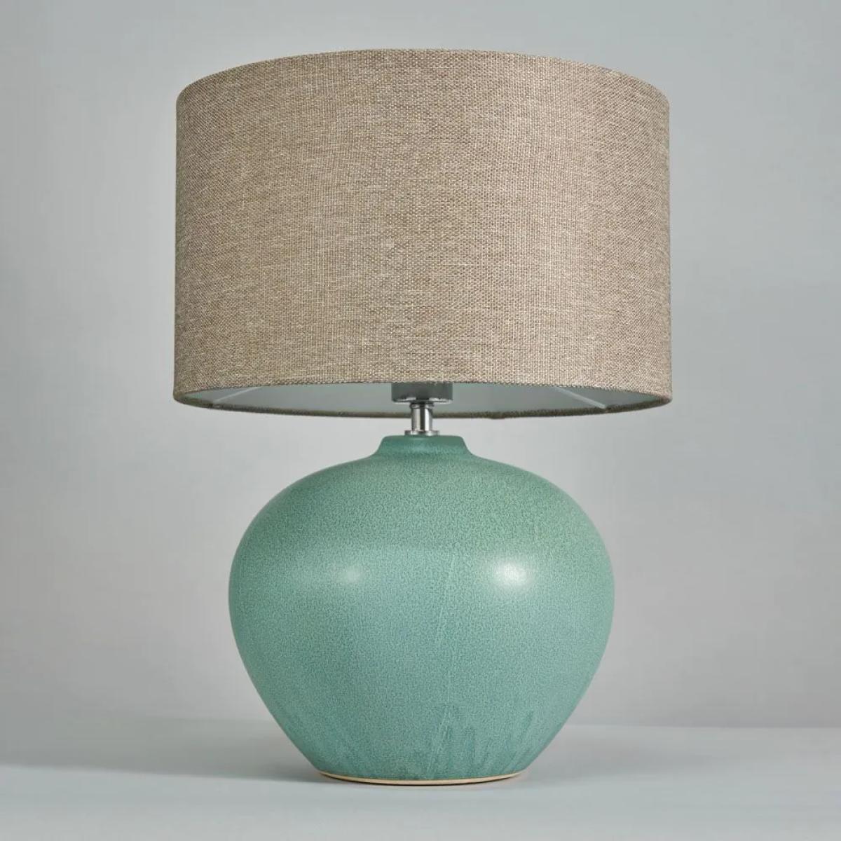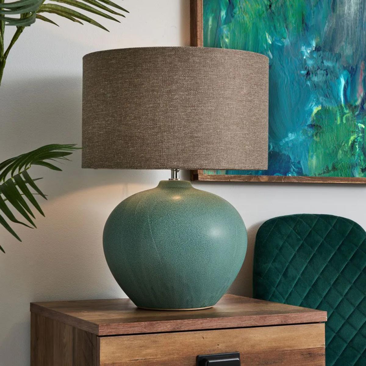 I love this table lamp for its vibrant green glaze, which adds a lively yet sophisticated touch to any interior. The reactive glaze finish gives it a subtle, unique variation, making each piece feel special. It works particularly well in contemporary or mid-century inspired spaces, but can also add a pop of colour to more neutral schemes. For styling, place it on a side table or console in living rooms or bedrooms, pairing it with natural textiles or minimal accessories to let the lamp be a statement piece. Practical tips include choosing a warm-toned bulb to enhance the green hue and ensuring the shade height complements surrounding furniture for balanced lighting.
