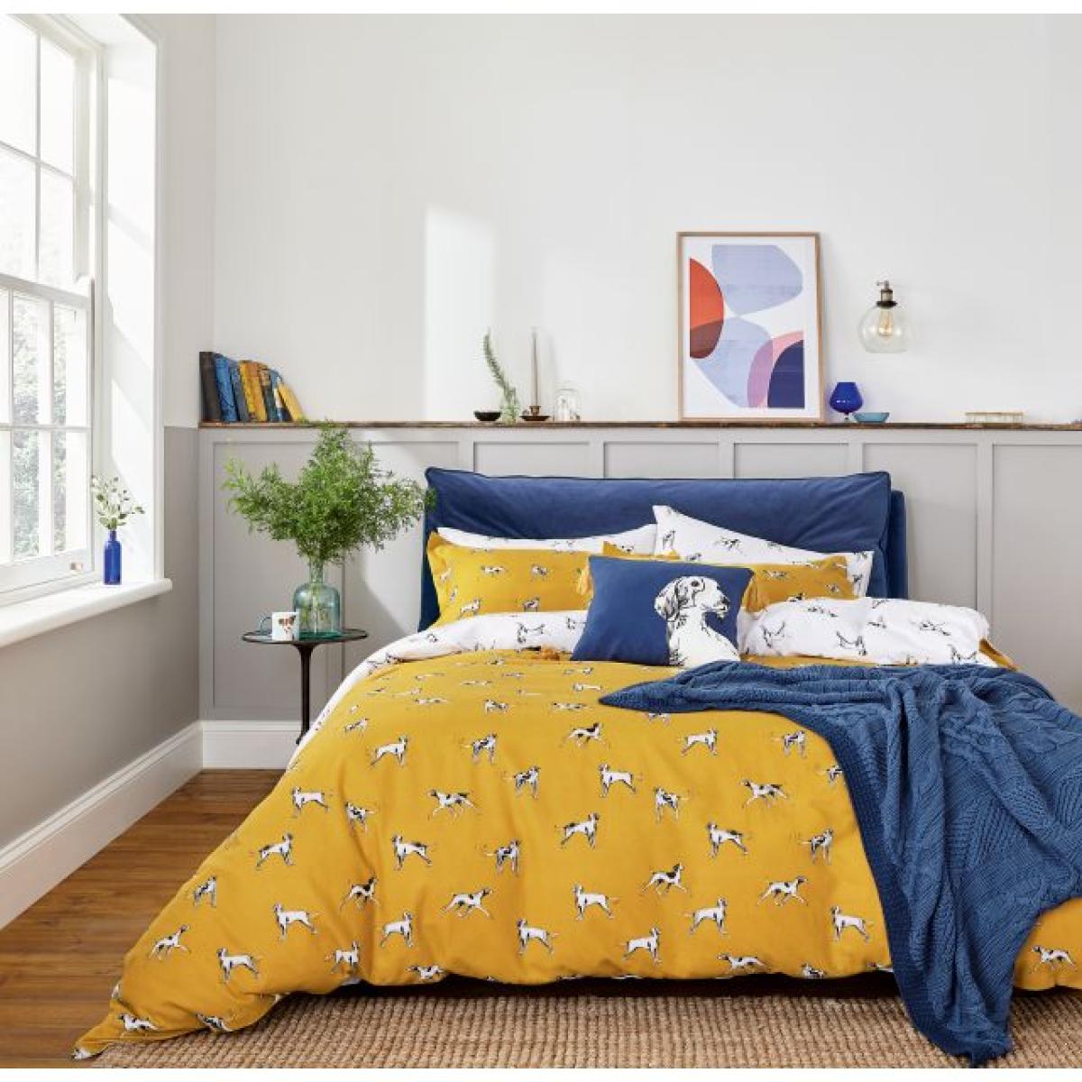 It's no secret that dogs are Joules' best friend and so of course there's a bedding set for fellow dog lovers everywhere! The print is tail-waggingly brilliant with an array of four-legged friends brought to life through a series of hand-drawn sketches, while the entire set is sumptuously soft thanks to the brushed back cotton finish. The print stands out against an antique gold background that will bring sunshine to the bedroom (even when it's cloudy outside) and is complemented by the same print on the reverse on a fresh white background. Joules are proud members of the Better Cotton Initiative (BCI) and are pleased to tell you that this product is made using sustainably sourced cotton. Composition: 100% Brushed Cotton Machine Washable Single set contains x 1 Pillowcase Double, King and Superking sets contain x 2 Pillowcases All screens vary in colour reproduction and whilst every effort has been made to display the colour as accurately as possible it is for guidance only.