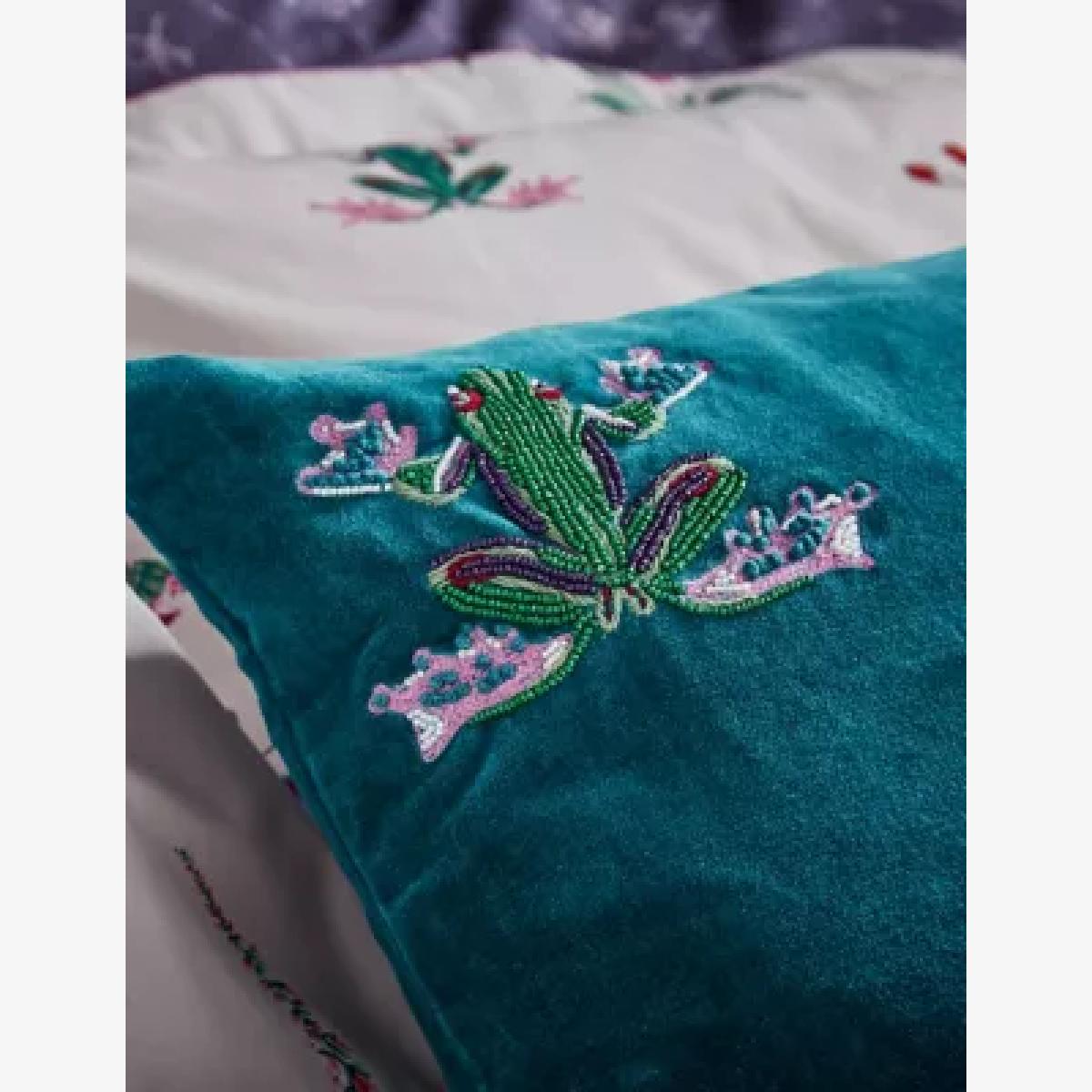Joules Velvet Midnight Beasts Embellished Cushion - Teal, Teal