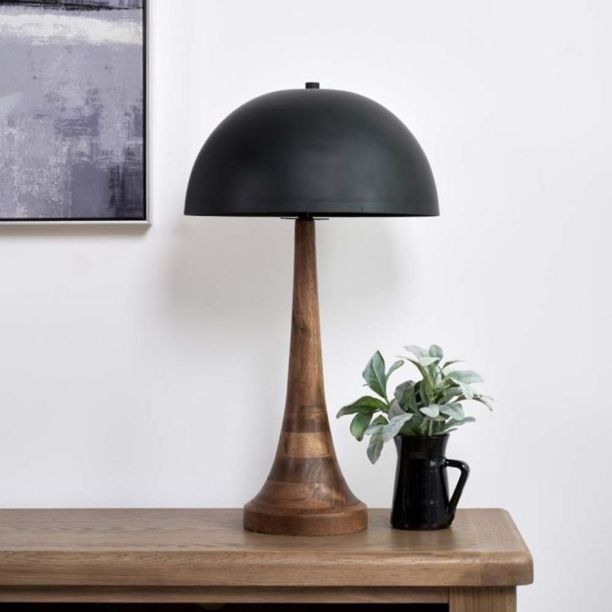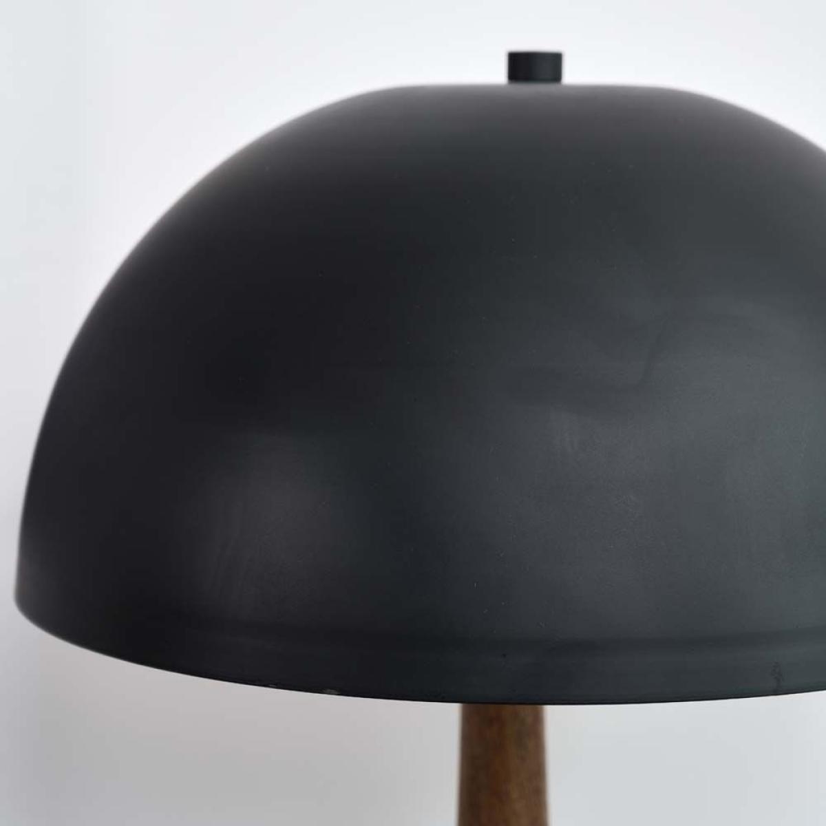 The Jovany Medium Lamp is a stylish industrial design. The lamp features a curved stem made from tropical wood in a dark stain and topped with a dome shaped shade made from black powder coated steel. This lamp comes in three sizes and is super easy to assemble. Make a statement in your home with the Jovany Medium Lamp.