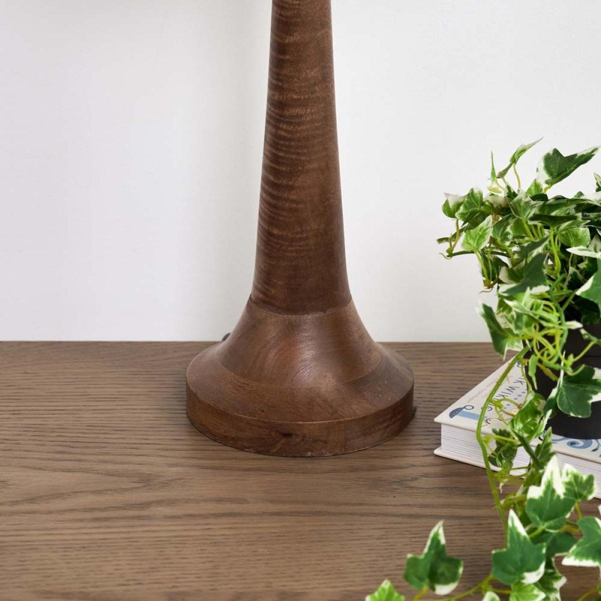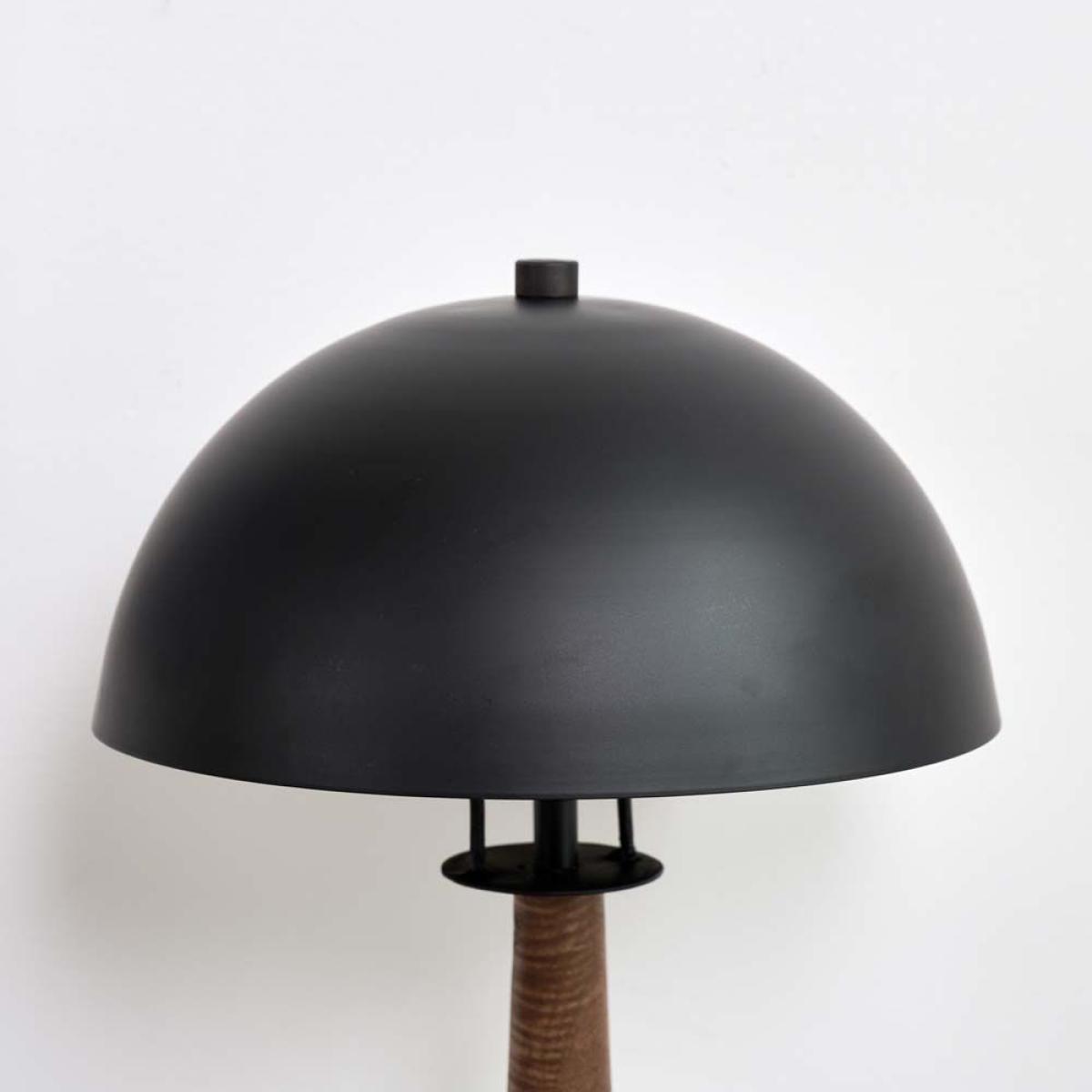 The Jovany Small Lamp is a stylish and unique design with a nod to the industrial trend. Perfect for a side table or desk, the lamp features a curved stem made from tropical wood in a dark stain and topped with a dome shaped shade made from black powder coated steel. This lamp comes in three sizes and is super easy to assemble. Make a statement in your home with the Jovany Lamp. Dimensions: W30cm x H60cm. Curved wooden stem. Domed black metal shade. Simple self assembly