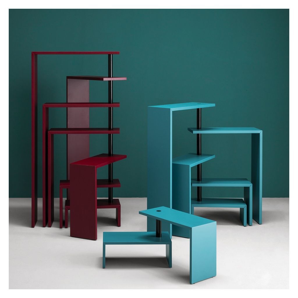 Designed in 1989 by Achille Castiglioni, the Joy Rotating Shelving Unit in dark blue-green is a dynamic storage unit that offers five versatile shelves that can be adapted to create a unique display. Pivoting from a black steel articulated joint, the Achille Castiglioni Joy Shelving Unit allows each of its five shelves to rotate around its stem to create a sweeping silhouette and personalised formation. The Joy Rotating Shelving Unit showcases a scratch-resistant dark blue-green body, which ensures a resilient surface and striking aesthetic. Manufactured by Italian leaders in industrial design, Zanotta, the Joy Rotating Shelving Unit in dark blue-green would make a distinctive addition to any living space.