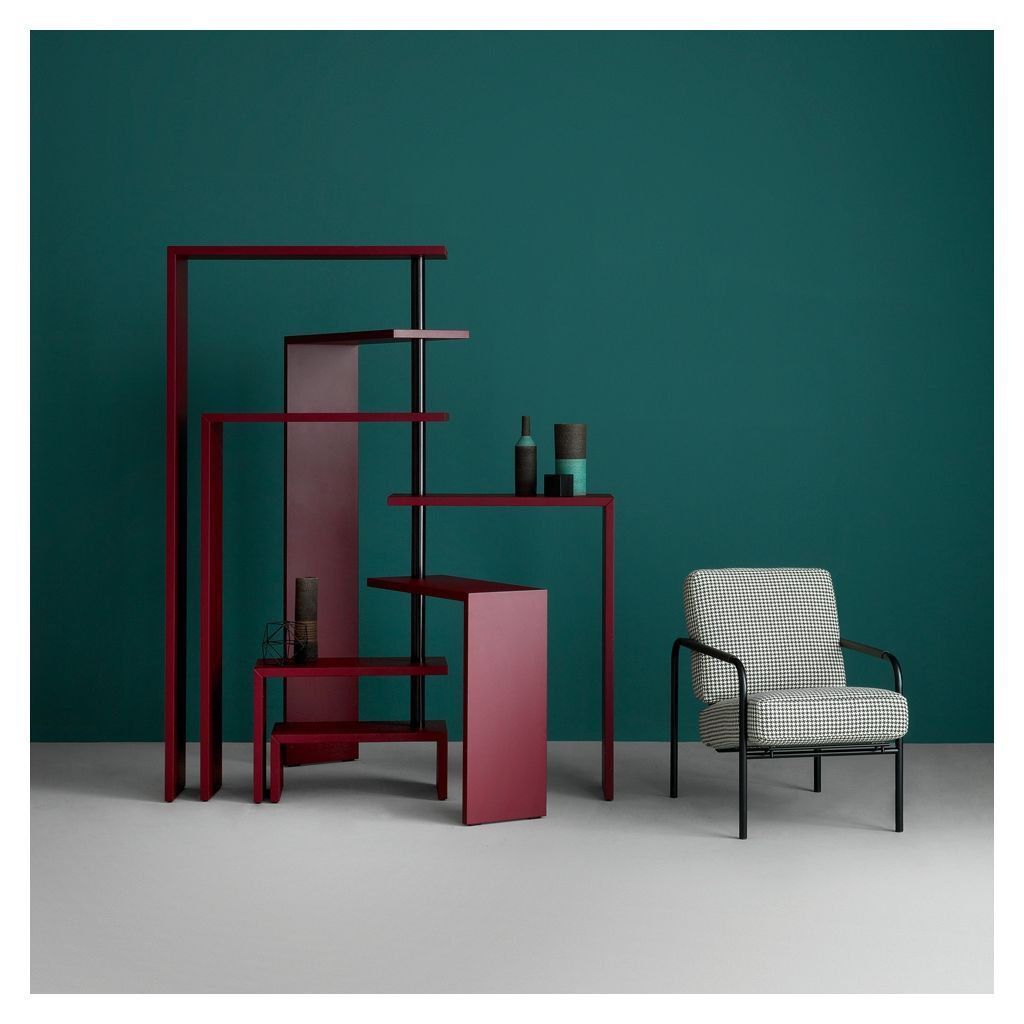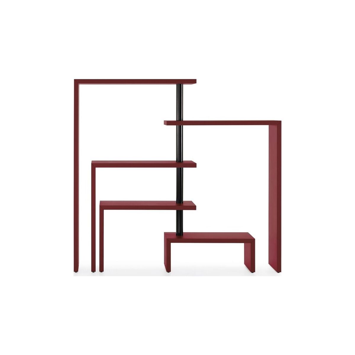 Designed in 1989 by Achille Castiglioni, the Joy Rotating Shelving Unit in burgundy is a dynamic storage unit that offers five versatile shelves that can be adapted to create a unique display. Pivoting from a black steel articulated joint, the Achille Castiglioni Joy Shelving Unit allows each of its five shelves to rotate around its stem to create a sweeping silhouette and personalised formation. The Joy Rotating Shelving Unit showcases a scratch-resistant burgundy body, which ensures a resilient surface and striking aesthetic. Manufactured by Italian leaders in industrial design, Zanotta, the Joy Rotating Shelving Unit in burgundy would make a distinctive addition to any living space.