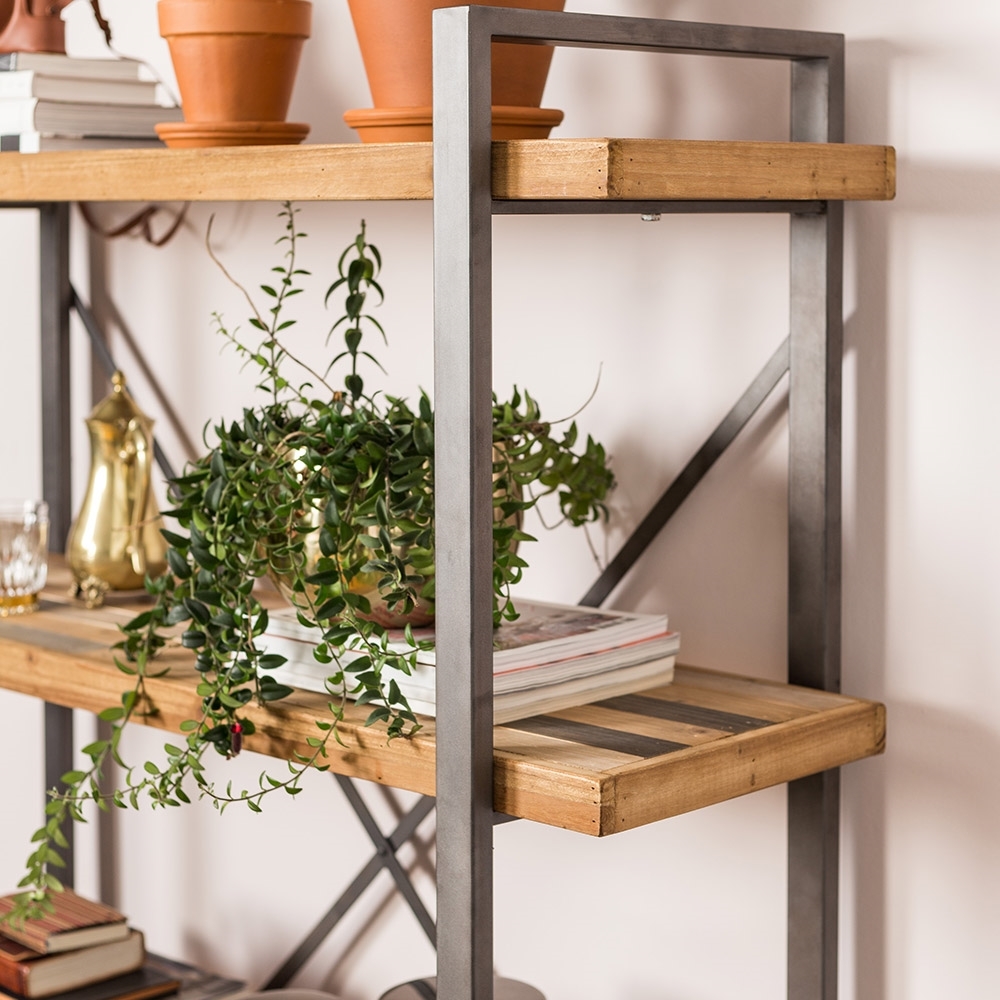 The Joy Shelving Unit is sure to be a joy wherever it is placed! Display your book collection in style on the four large shelves this stunner boasts. Manufactured from solid fir wood slats on an MDF base, the different colours add a gorgeous element whilst the iron frame gives these shelves a rustic, industrial feel that would be a striking addition to any room. Whether you pop it in the kitchen to hold your recipe books, herb garden and endless mug collection or in the living room with a couple of succulents and family photos the Joy will have no trouble holding it all!