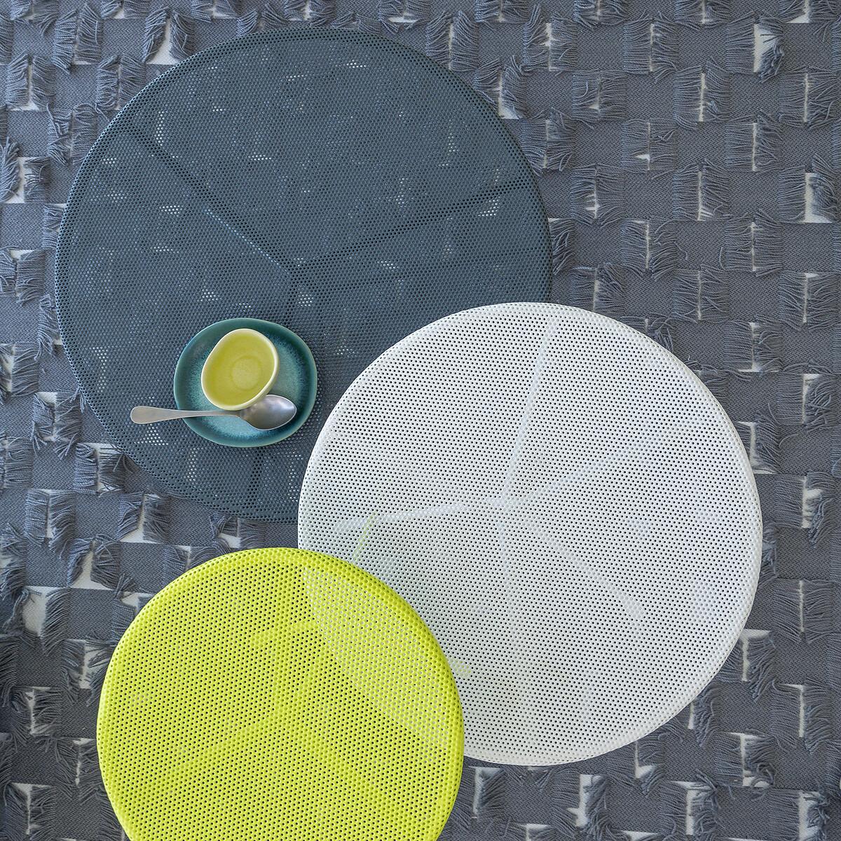 A set of sparkling little tables, available in three bright colours. Inspired by the design of the 1950s, they are made of light, airy perforated metal. Versatile and elegant, they can be adapted to suit every taste: grouped together for a dynamic effect or used individually as cocktail tables. The Joy side table is part of the "Nomad Escape" collection designed by Otto, an agency founded by architect and designer Paola Navone. Led by Cristina Pettenuzzo and Domenico Diego, this collection has a bold and unique identity, transforming the home into an bright and positive oasis of well-being for all seasons. Product Details • Micro-perforated iron table top • Tubular iron structure and base • Epoxy finish. Dimensions • Diameter: 45cm • Height: 34cm • Sold pre-assembled. Dimensions and weight of parcel • 1 parcel • L56 x H41 x D52cm. 4.7kg