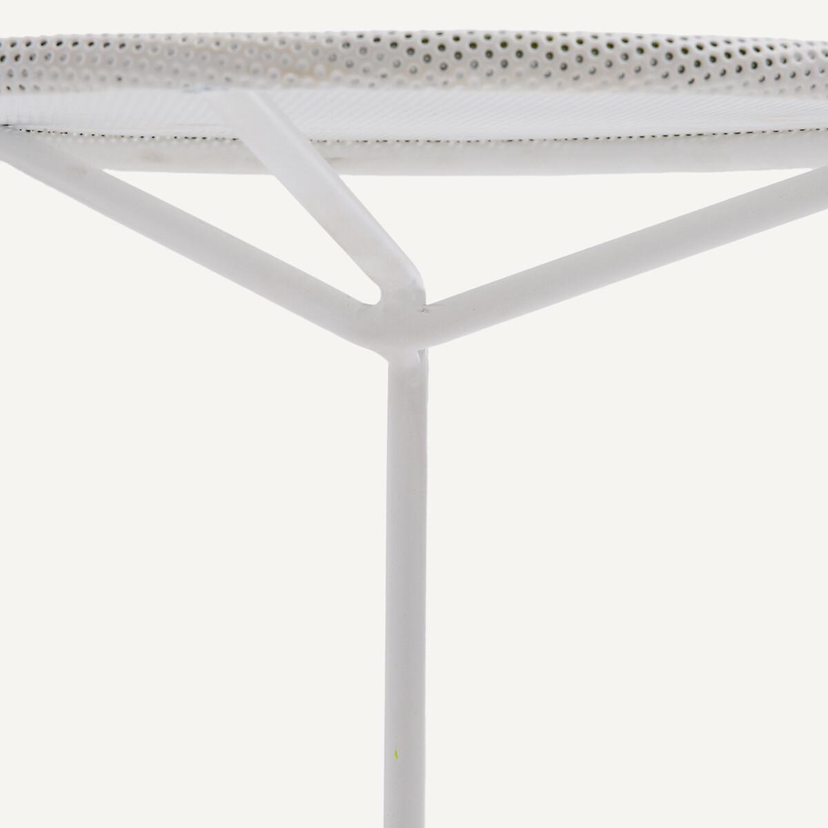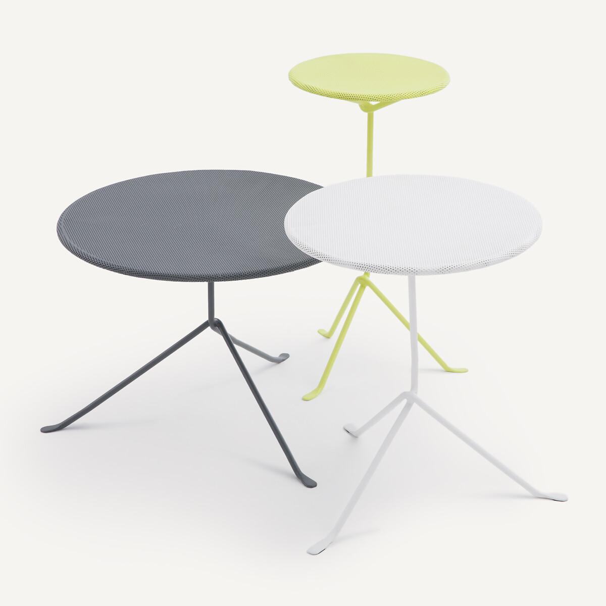 A set of sparkling little tables, available in three bright colours. Inspired by the design of the 1950s, they are made of light, airy perforated metal. Versatile and elegant, they can be adapted to suit every taste: grouped together for a dynamic effect or used individually as cocktail tables. The Joy side table is part of the "Nomad Escape" collection designed by Otto, an agency founded by architect and designer Paola Navone. Led by Cristina Pettenuzzo and Domenico Diego, this collection has a bold and unique identity, transforming the home into an bright and positive oasis of well-being for all seasons. Product Details • Micro-perforated iron table top • Tubular iron structure and base • Epoxy finish. Dimensions • Diameter: 35cm • Height: 42cm • Sold pre-assembled. Dimensions and weight of parcel • 1 parcel • L44 x H49 x D44cm. 3.7kg