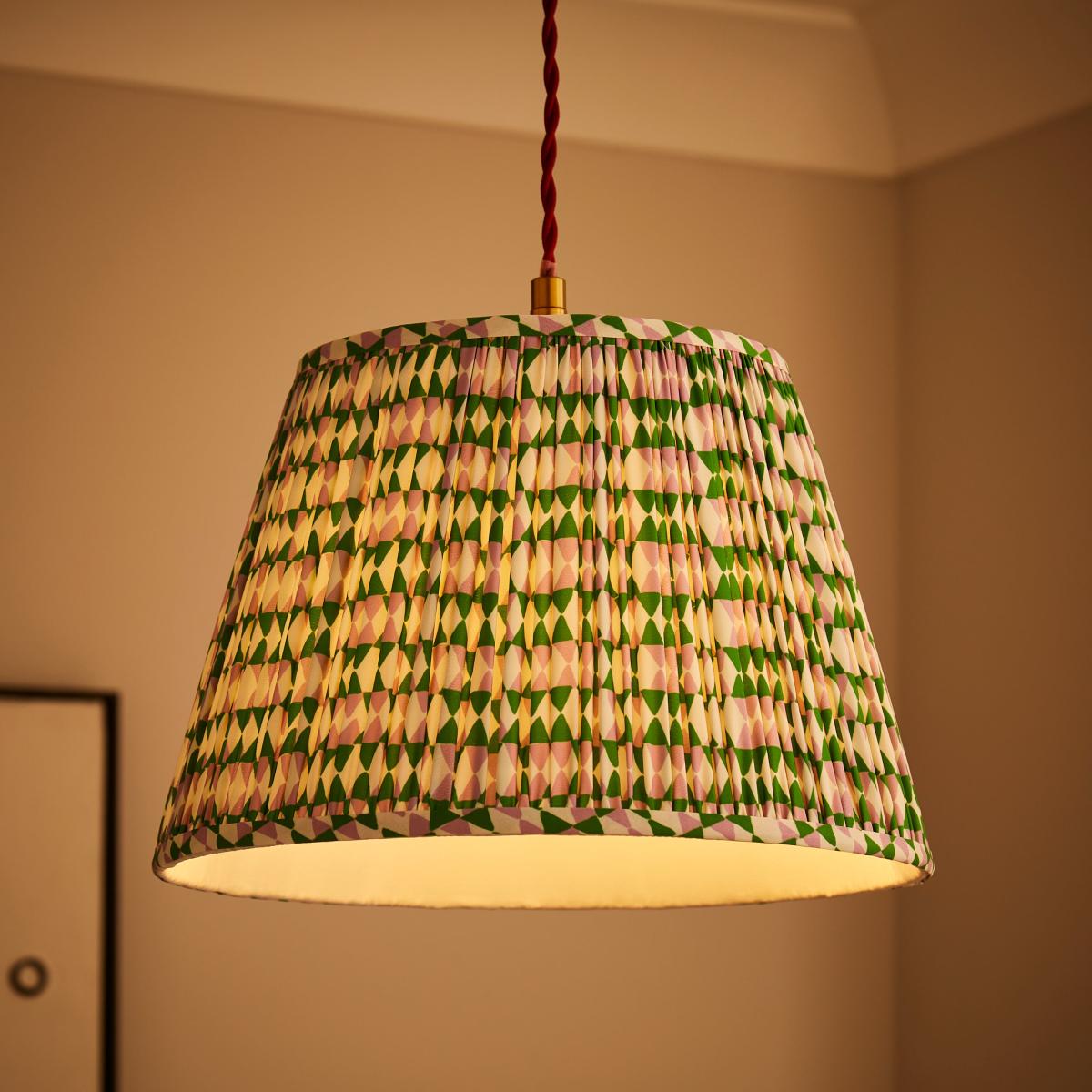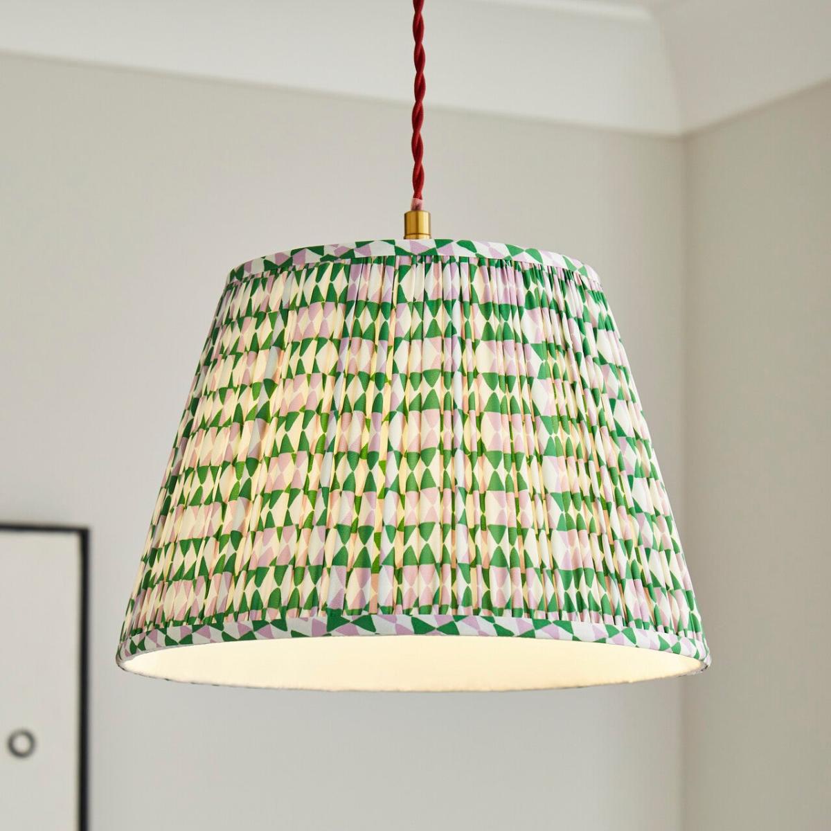 I love this shade for its playful conical shape and vibrant green colour-it adds a cheerful touch to any space. It works particularly well in eclectic, retro-inspired interiors or kitchens and children’s rooms where a pop of colour can make a real impact. When styling with this shade, consider pairing it with neutral or white furniture to let the colour stand out, or mix it with other green accents for a fresh, cohesive look. Practical tips include using a bulb with a warm light to enhance its colour and pattern, and placing it on a simple lamp base to keep the focus on the shade’s interesting form. It’s a versatile piece that adds personality and brightness to both contemporary and vintage decor schemes.