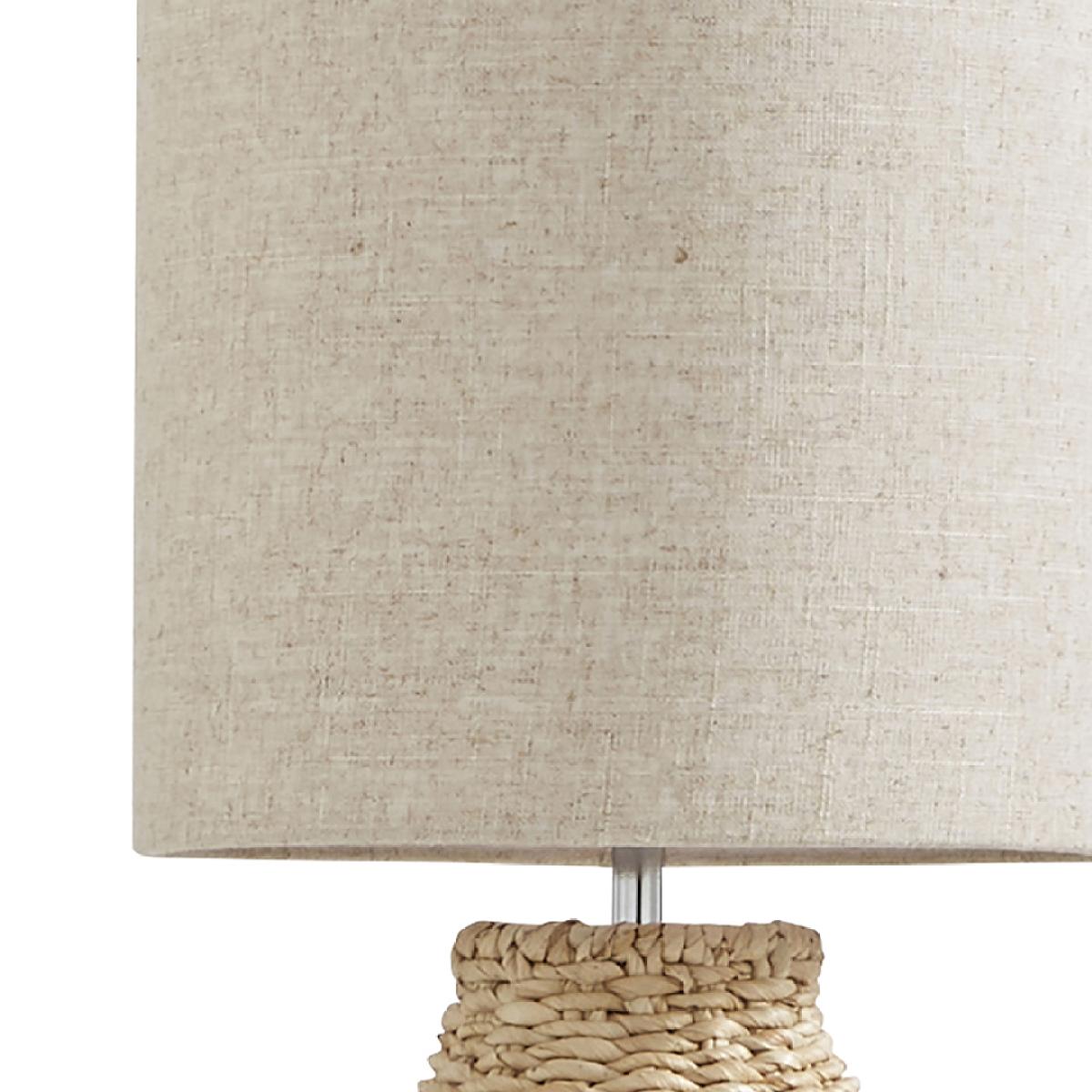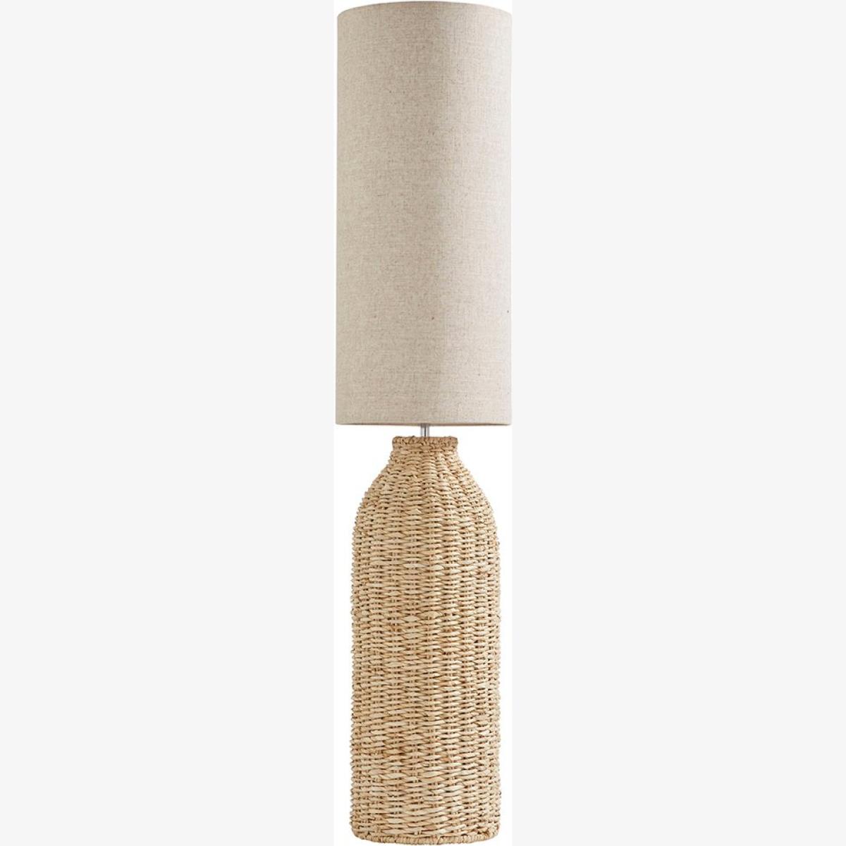 Introducing the Joyce Natural Woven Floor Lamp, a stunning blend of nature and elegance. Handcrafted with care, this lamp features a unique bottle-shaped base meticulously woven from natural corn fibre, adding a touch of rustic charm to any room. The tall rolled-edge cylinder shade complements the natural colour palette, creating a warm and inviting ambience.