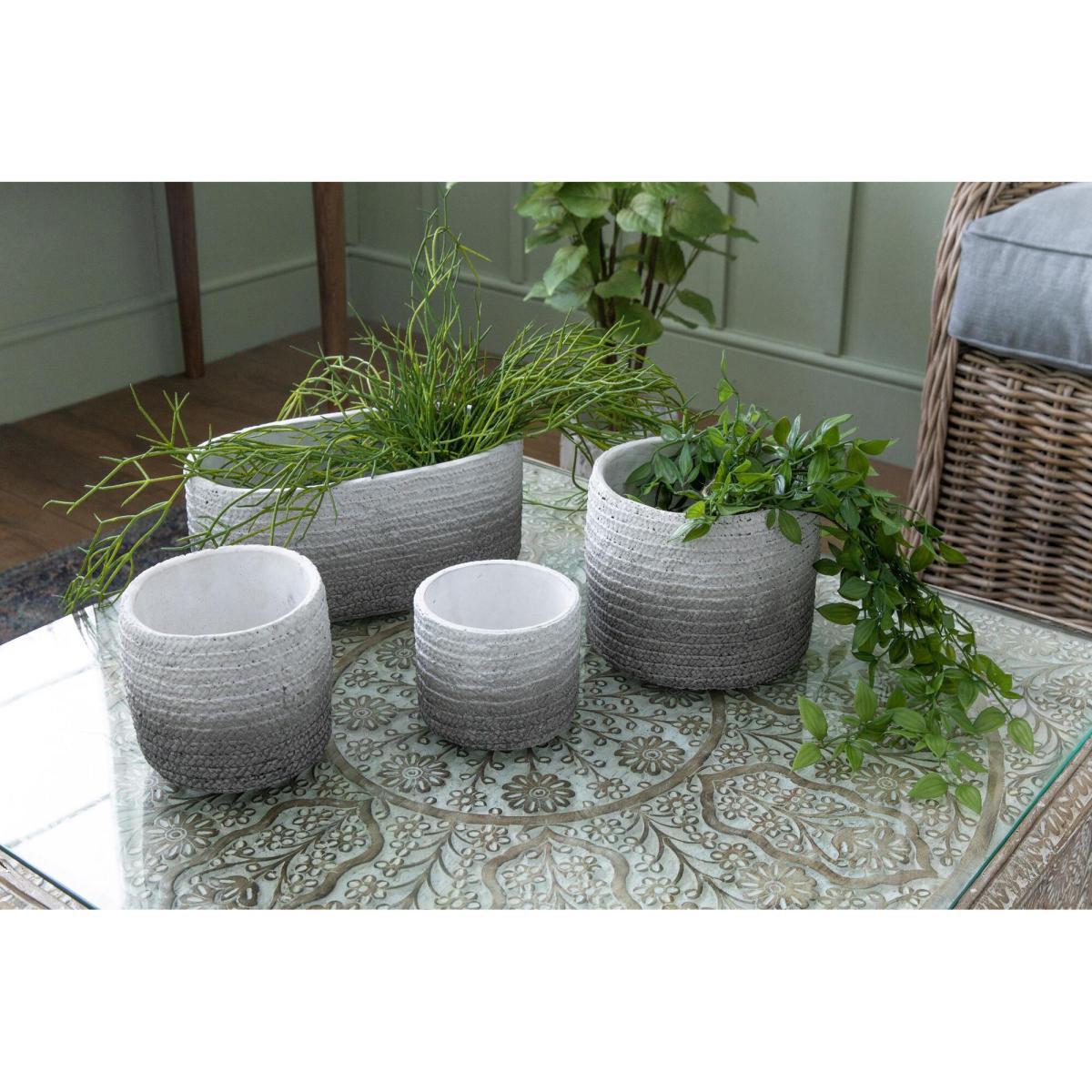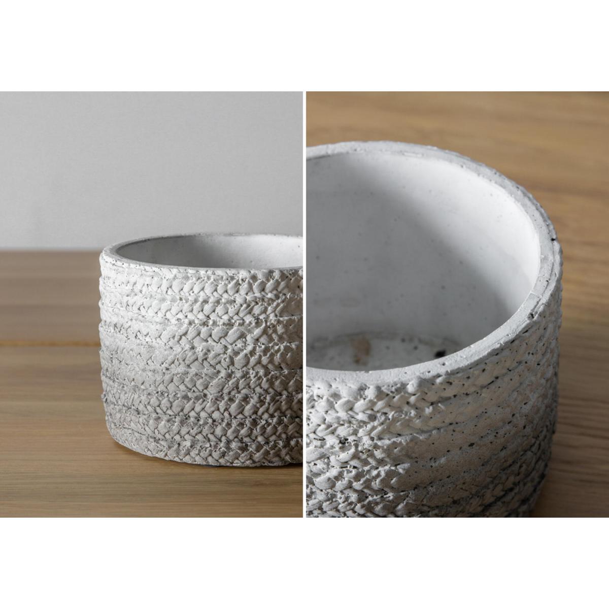 With a texture almost akin to natural basket weaving, the Joyce range of Planters makes incredible use of Cement as a building material, featuring a striking pattern and monochrome ombre shading. Suitable for inside or out, strong and sturdy.