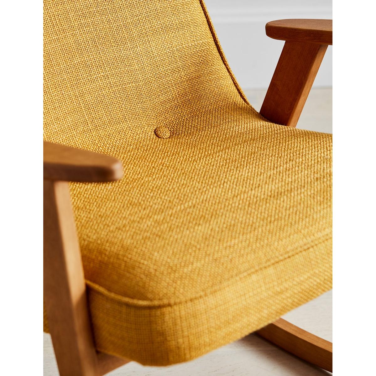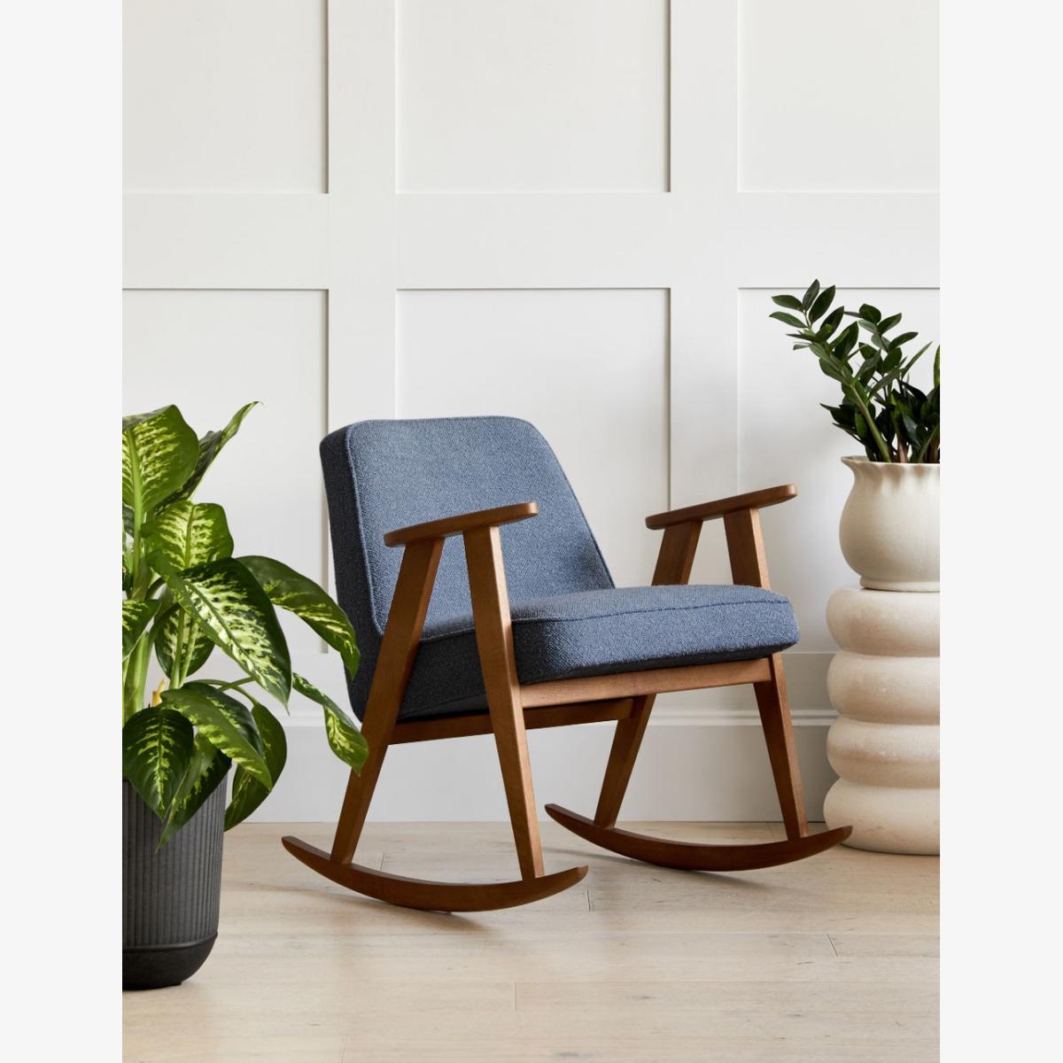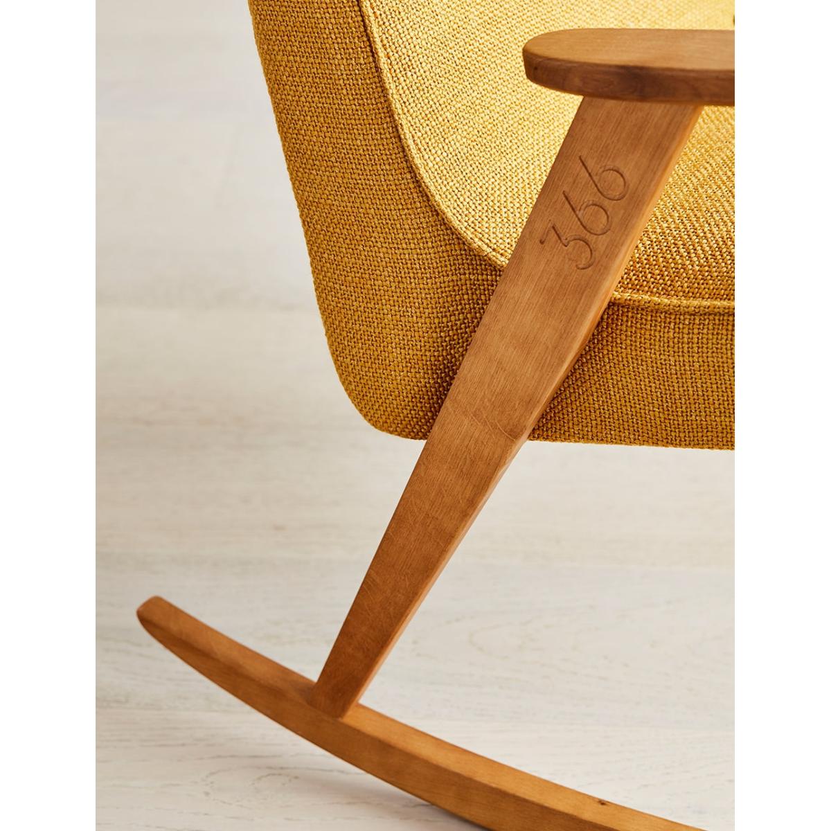 366 Concept revive icons of Polish Mid-Century design including the classic 366 Easy Chair designed by Jozef Chierowski in 1962. The stylish Rocking Chair is a contemporary addition to this series. The sleek oak frame and comfortable cushioned seat allow the chair to fit in with a Mid-Century Modern aesthetic or to stand out as a statement piece of furniture. Each piece is hand-finished by a team of specialists in Poland and carries a Green Friendly Certificate. Pictured here in Boucle Denim and Light Oak wood