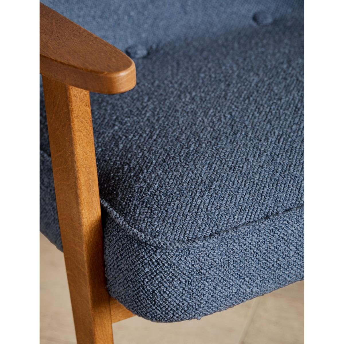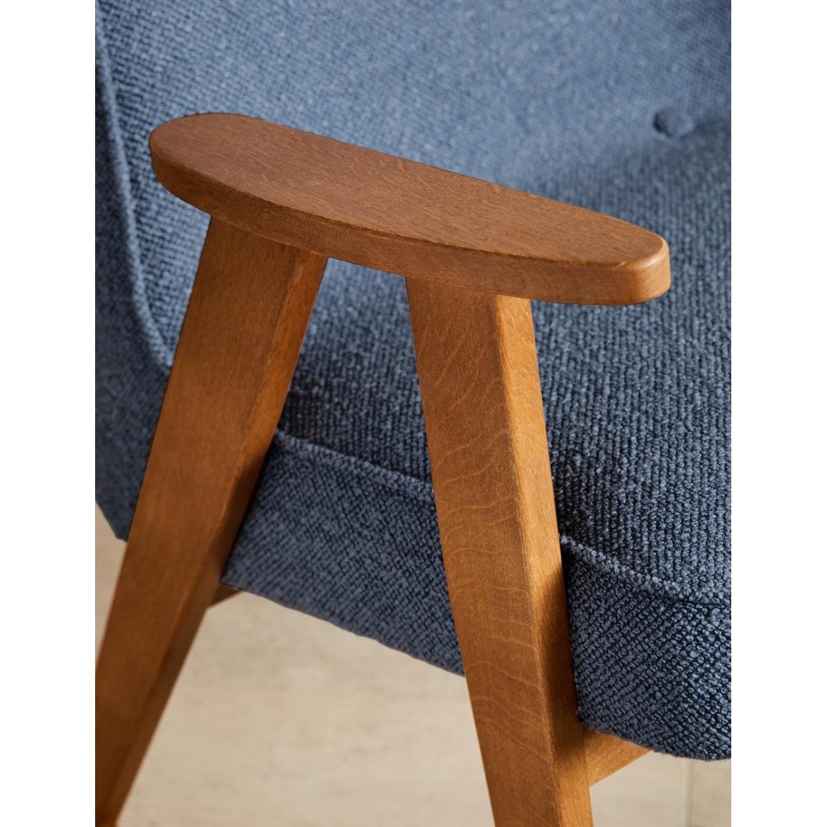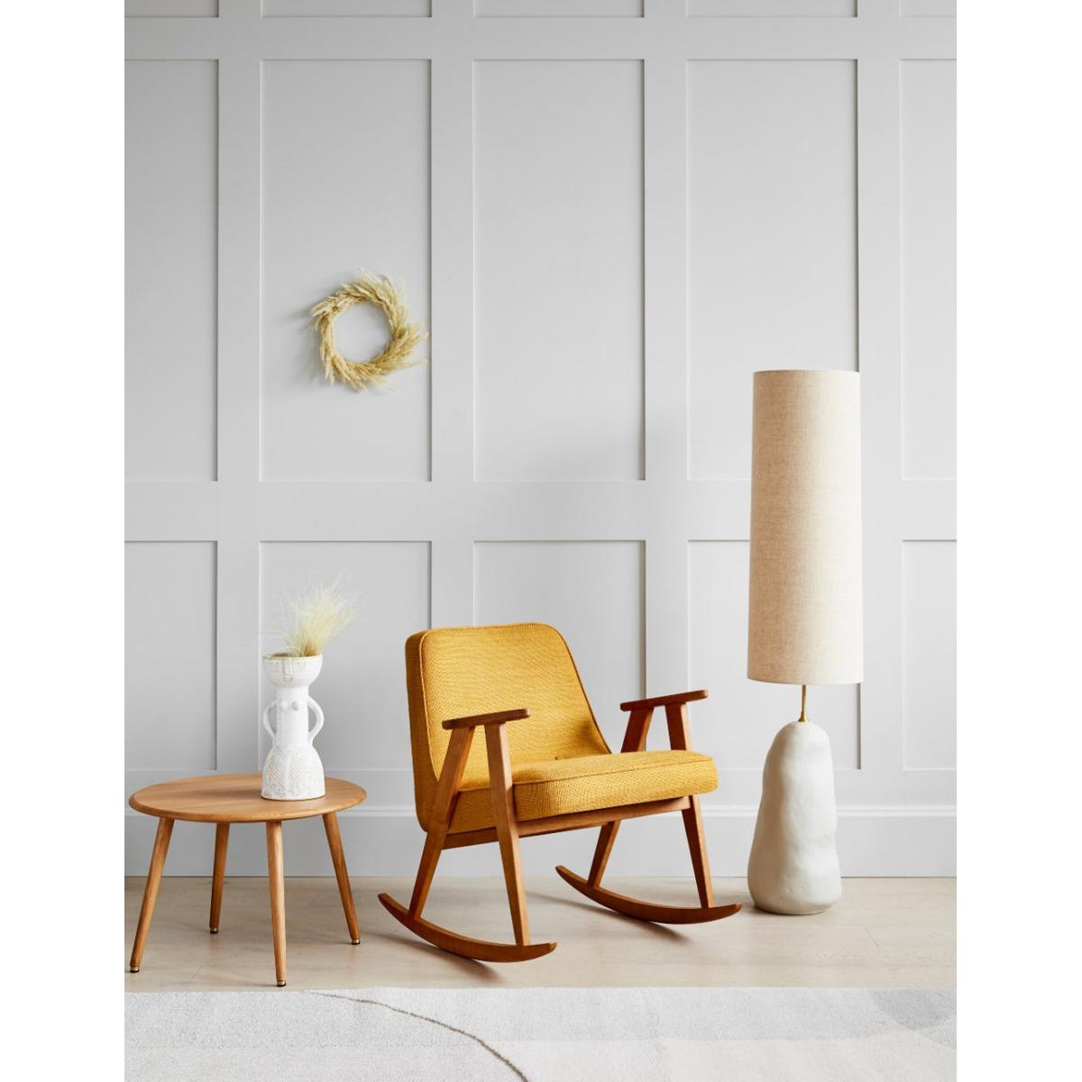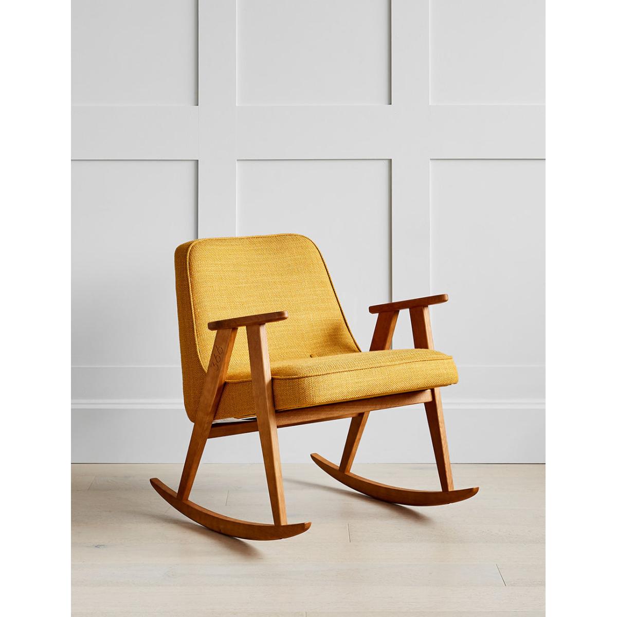 366 Concept revive icons of Polish Mid-Century design including the classic 366 Easy Chair designed by Jozef Chierowski in 1962. The stylish Rocking Chair is a contemporary addition to this series. The sleek oak frame and comfortable cushioned seat allow the chair to fit in with a Mid-Century Modern aesthetic or to stand out as a statement piece of furniture. Each piece is hand-finished by a team of specialists in Poland and carries a Green Friendly Certificate. Pictured here in Boucle Denim and Light Oak wood