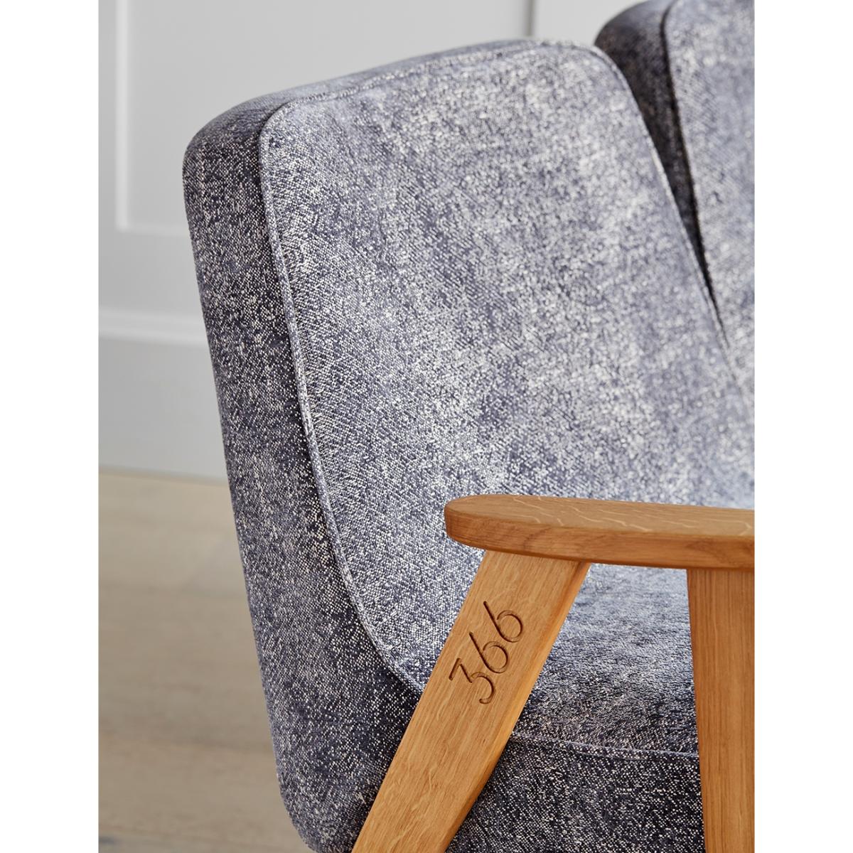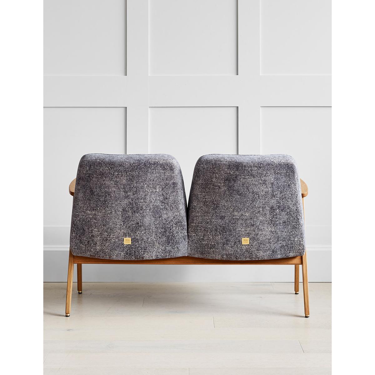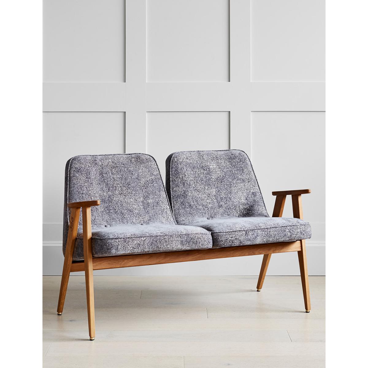 366 Concept revive icons of Polish Mid-Century design including the classic 366 Easy Chair designed by Jozef Chierowski in 1962. The stylish Two Seater Chair is a contemporary addition to this series. The sleek oak frame and comfortable cushioned seat allow the chair to fit in with a Mid-Century Modern aesthetic or to stand out as a statement piece of furniture. Each piece is hand-finished by a team of specialists in Poland and carries a Green Friendly Certificate. Pictured here in Marble Graphite and Light Oak wood.