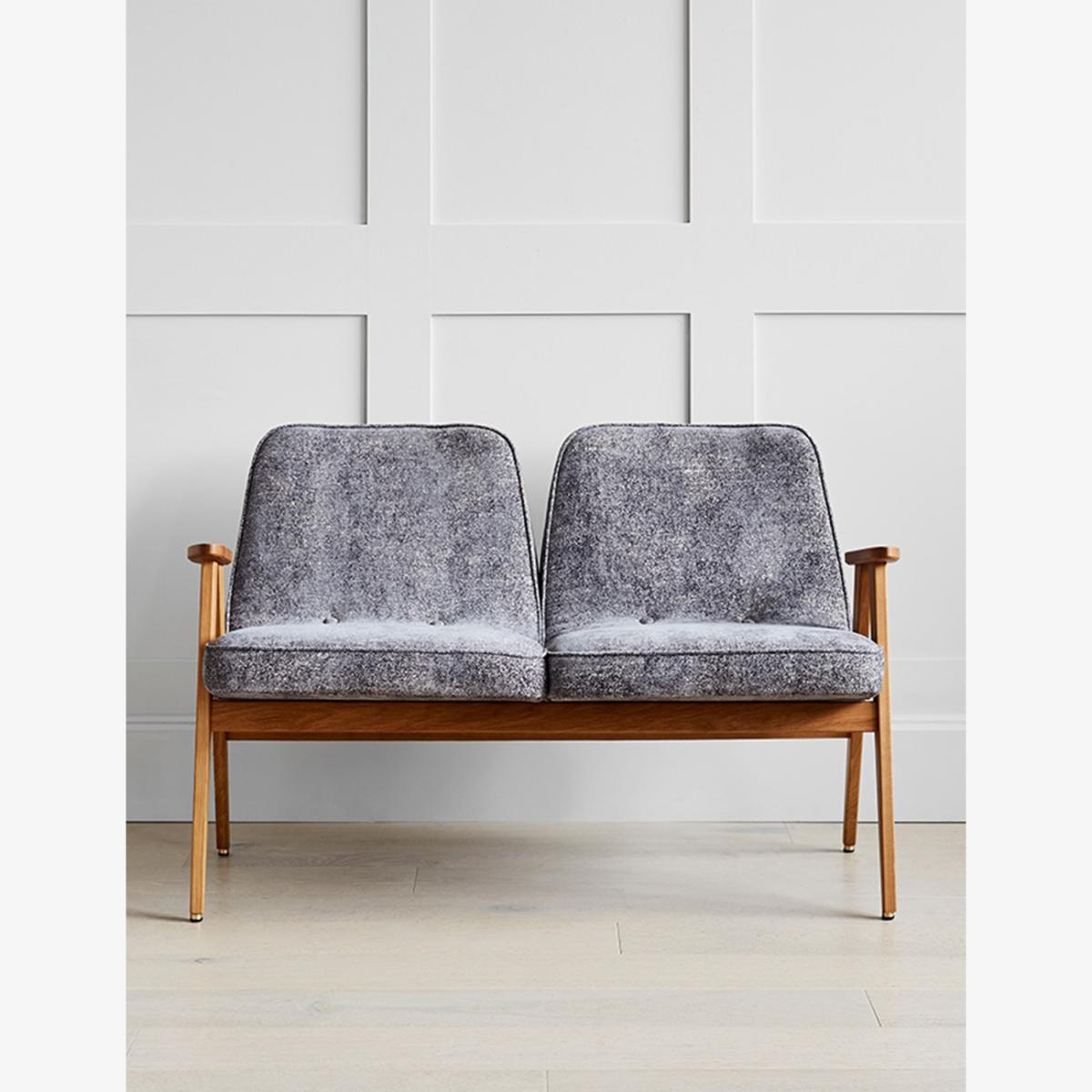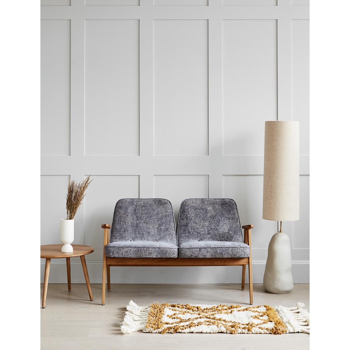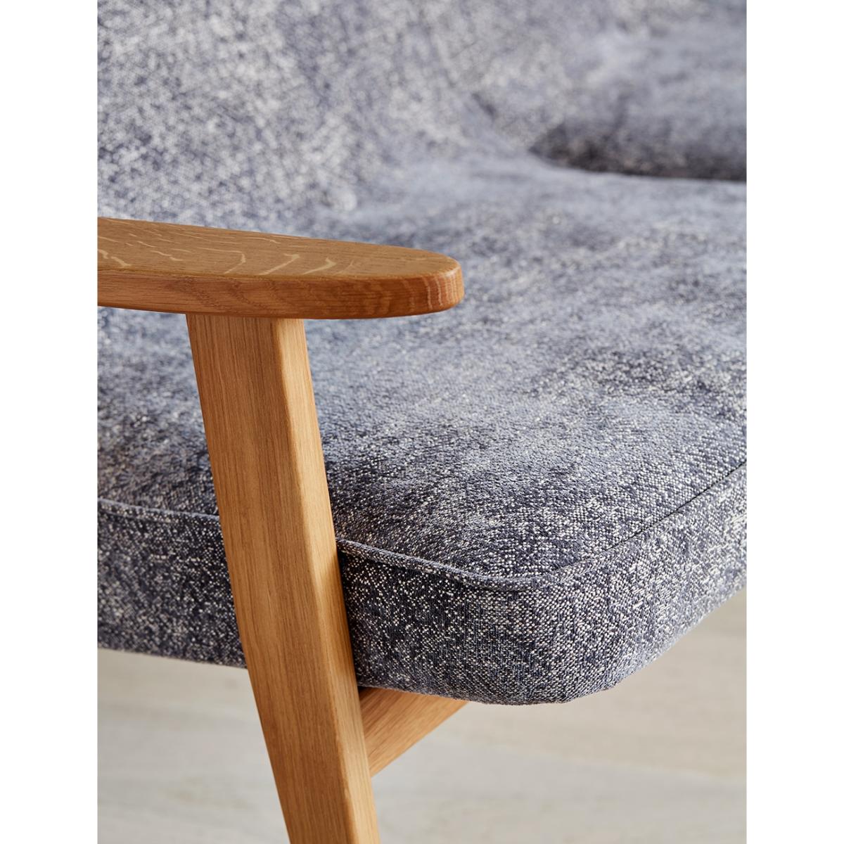 366 Concept revive icons of Polish Mid-Century design including the classic 366 Easy Chair designed by Jozef Chierowski in 1962. The stylish Two Seater Chair is a contemporary addition to this series. The sleek oak frame and comfortable cushioned seat allow the chair to fit in with a Mid-Century Modern aesthetic or to stand out as a statement piece of furniture. Each piece is hand-finished by a team of specialists in Poland and carries a Green Friendly Certificate. Pictured here in Marble Graphite and Light Oak wood.