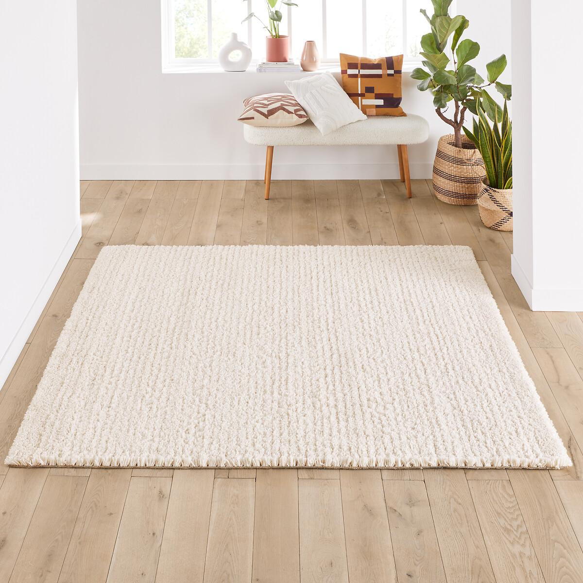 I love this plain striped rug for its versatility and understated elegance. It works well in contemporary, Scandi, or minimalist interiors where a neutral base is key, as well as in more relaxed or coastal schemes that benefit from its light, airy feel. The simple striped pattern adds subtle texture without overwhelming the space, making it an excellent choice for living rooms, bedrooms, or even hallways. Practical styling tips include pairing it with natural wood furniture or soft textiles for a layered look, and it’s especially effective when layered with smaller, colourful rugs for visual interest. Its neutral tone makes it easy to incorporate into various colour palettes, ensuring longevity in your decor.