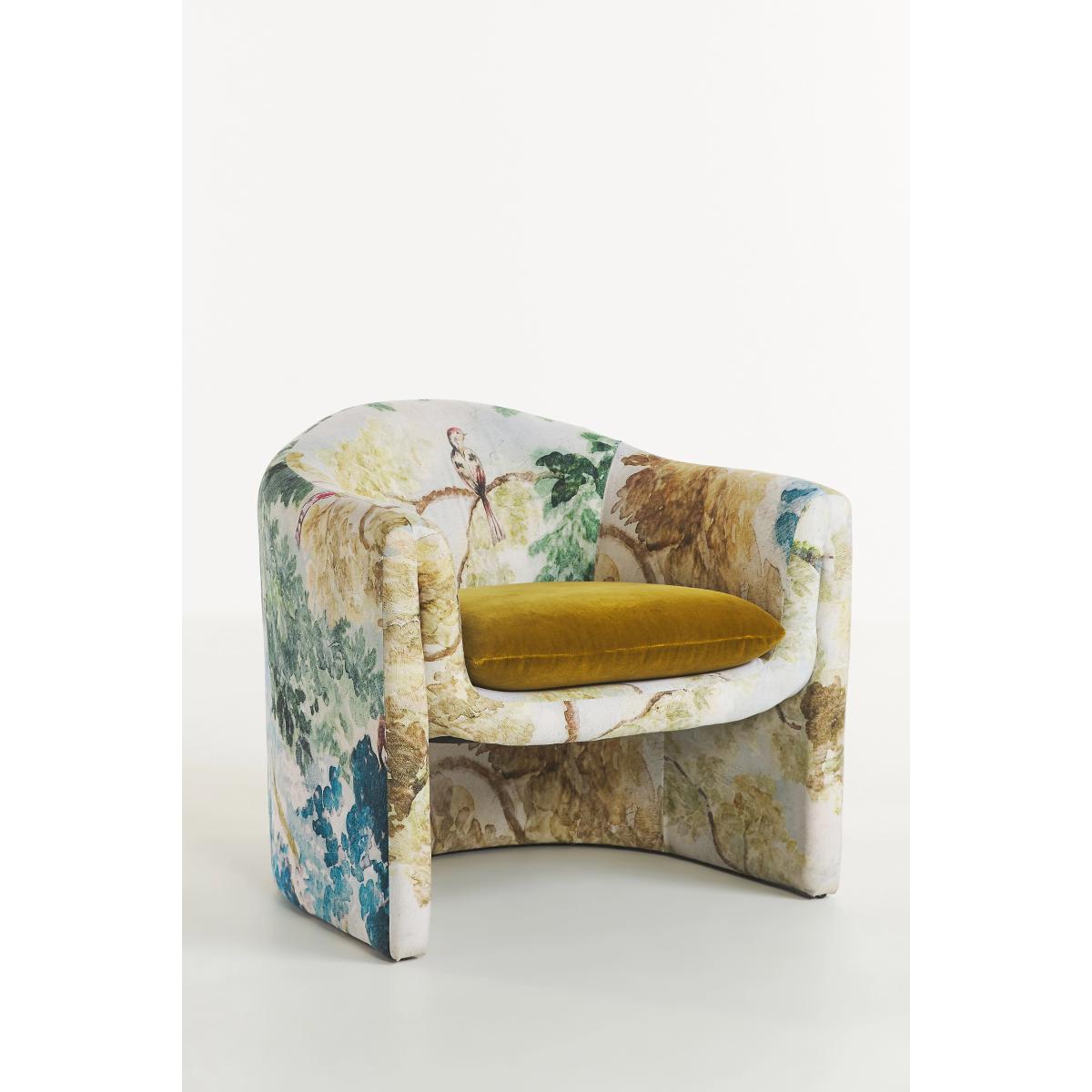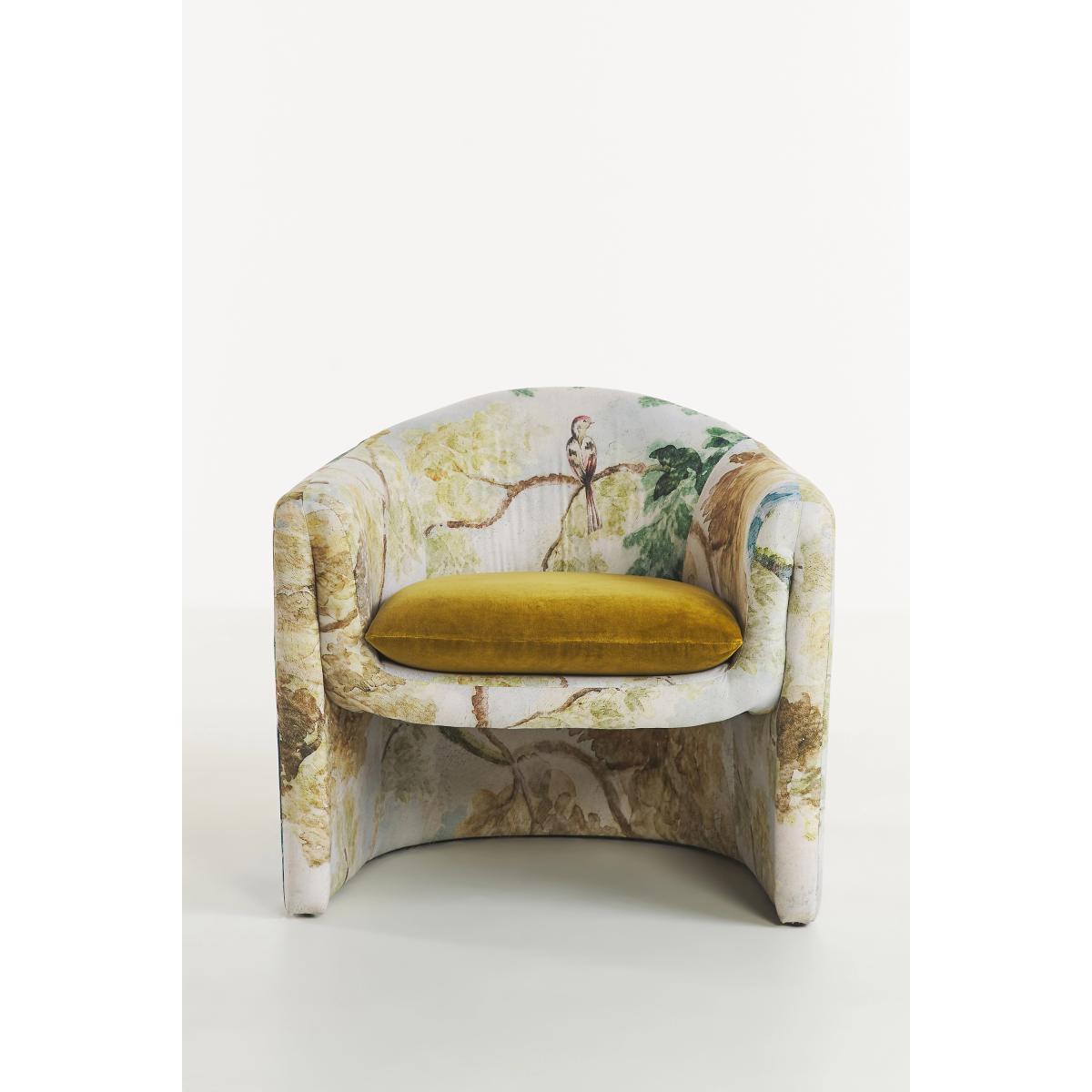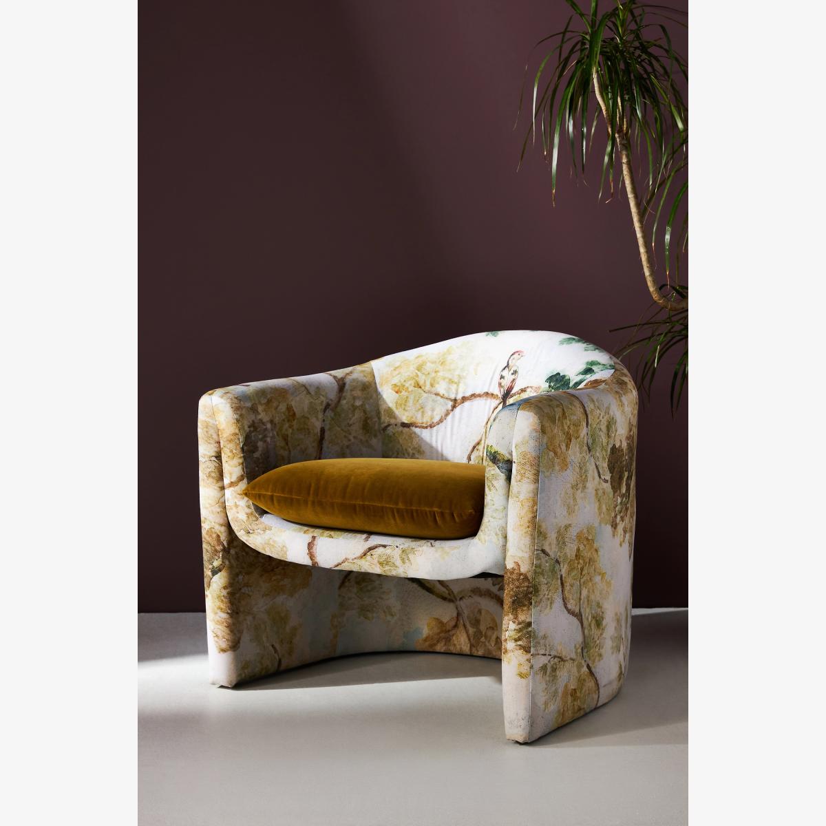 From its U-curved seat topped with a plush cushion to its modern take on a barrel back silhouette, this chair is a true sculptural work of art - and a luxe addition to an office, club room, or living space. Judarn Linen & Velvet Sculptural Accent Chair by Anthropologie