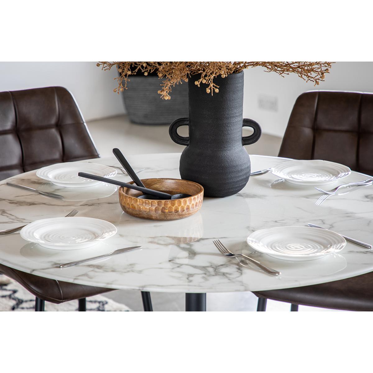 Up the glam factor and take your dining space to the next level with the Jude table. The super luxe white faux marble glass top feels incredibly glamorous while a slim fluted base adds the perfect finishing touch. Seating 4 people the Jude table is perfect for bringing stand out style to a smaller space.