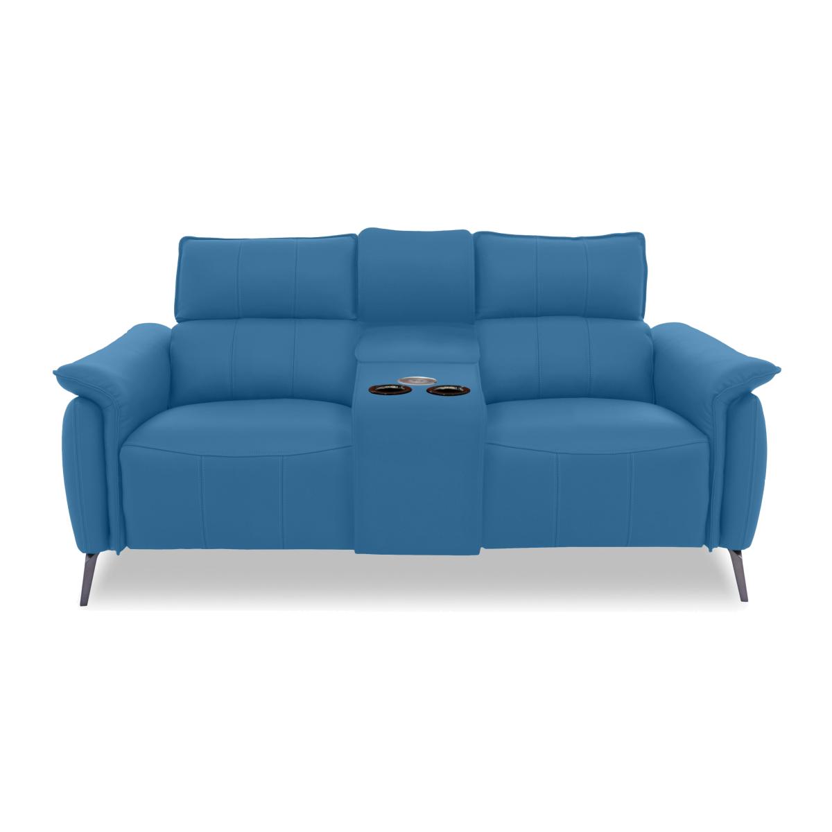 With its clean-lined contemporary look and outstanding pocket sprung seats, the Jude range strikes the perfect balance between style and comfort. This handcrafted collection includes sofas, armchairs and storage footstools and offers easy ways to find your way to perfect and personalised comfort thanks to the power recliner and telescopic headrest sofa and armchair options. Showcasing understated yet elegant metal legs in an on-trend gunmetal grey finish, pieces are upholstered in your choice of sumptuous 100% leather or high-quality fabric in a selection of colours. The Jude range is exclusively available at Furniture Village. This fabulous leather sofa makes life better with power recliners and telescopic headrests and a high-tech console unit with cooling cup holders, multiple device charging points and much more. Why you'll love it 2-seater leather power recliner sofa has a high-tech console unit for charging and more. Relaxed contemporary style. Power recliners and power telescopic headrests for head-to-toe comfort. Smart console unit has wireless charging, cooling cup holders and a storage space. Built-in USB and USB-C charging for the ultimate in convenience. Supportive pocket sprung seats and superb lumbar and arm cushioning. Butter-soft leather upholstery in a choice of colours. Slender metal legs have a gunmetal grey finish. Handmade exclusively for Furniture Village. This 2-seater leather power recliner sofa with smart console unit is part of the Jude range. What you need to know Medium comfort level. Seat suspension: sinuous spring. Seat cushioning: pocket spring, foam and fibre. Cushioning is fixed. Back suspension: webbing. Back cushioning: fibre. Cushioning is fixed. Feet are removable. Please allow time for the recliner mechanism to ease. Minor gaps are necessary to ensure ease of motion and may be exaggerated depending on floor type. Fixed seat and back cushions require smoothing and straightening regularly. To smooth and straighten fixed cushions, punch the back cushion’s top two corners and the seat cushion’s outer two corners, and pinch outwards. Leather has unique marks and characteristics with variance in colour and texture. Leather softens with use. Smoothing the tops of leather cushions prevents signs of visual comfort. Please read our upholstery care guide for more advice. Item code: JUDE2PCU40-003