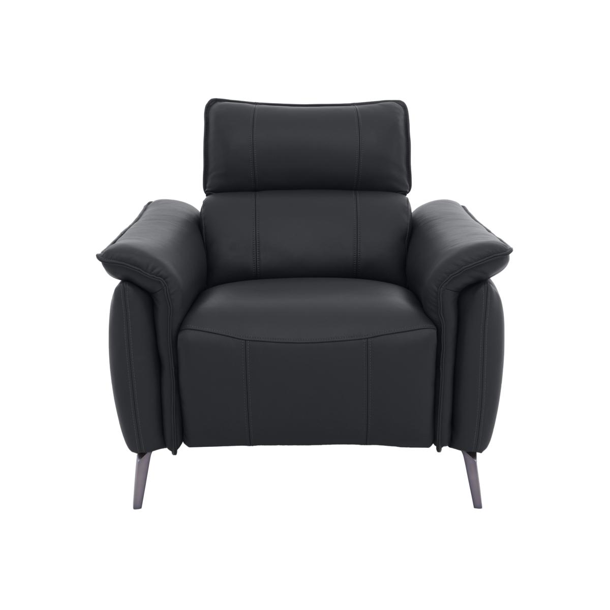 With its clean-lined contemporary look and outstanding pocket sprung seats, the Jude range strikes the perfect balance between style and comfort. This handcrafted collection includes sofas, armchairs and storage footstools and offers easy ways to find your way to perfect and personalised comfort thanks to the power recliner and telescopic headrest sofa and armchair options. Showcasing understated yet elegant metal legs in an on-trend gunmetal grey finish, pieces are upholstered in your choice of sumptuous 100% leather or high-quality fabric in a selection of colours. The Jude range is exclusively available at Furniture Village. Life’s easier and more stylish with this sleek, feature-packed Jude chair in 100% leather. As well as a power recliner, a power headrest and power lumbar support, it has a pocket sprung seat and USB and USB-C charging. Why you'll love it Everything about this Jude armchair is designed to help you relax – in style. Striking contemporary looks with plenty of high-tech features. Power recliner, power lumbar support and power telescopic headrest for head-to-toe comfort. Built-in USB and USB-C charging for the ultimate in convenience. You’ll love the supportive pocket sprung seat and superb lumbar and arm cushioning. Butter-soft leather upholstery in a choice of colours. Slender metal legs have a gunmetal grey finish. Handmade exclusively for Furniture Village. This leather power recliner armchair is part of the Jude range. What you need to know Medium comfort level. Seat suspension: sinuous spring. Seat cushioning: pocket spring, foam and fibre. Cushioning is fixed. Back suspension: webbing. Back cushioning: fibre. Cushioning is fixed. Feet are removable. Please allow time for the recliner mechanism to ease. Minor gaps are necessary to ensure ease of motion and may be exaggerated depending on floor type. Fixed seat and back cushions require smoothing and straightening regularly. To smooth and straighten fixed cushions, punch the back cushion’s top two corners and the seat cushion’s outer two corners, and pinch outwards. Leather has unique marks and characteristics with variance in colour and texture. Leather softens with use. Smoothing the tops of leather cushions prevents signs of visual comfort. Please read our upholstery care guide for more advice. Item code: JUDECPHL60-006