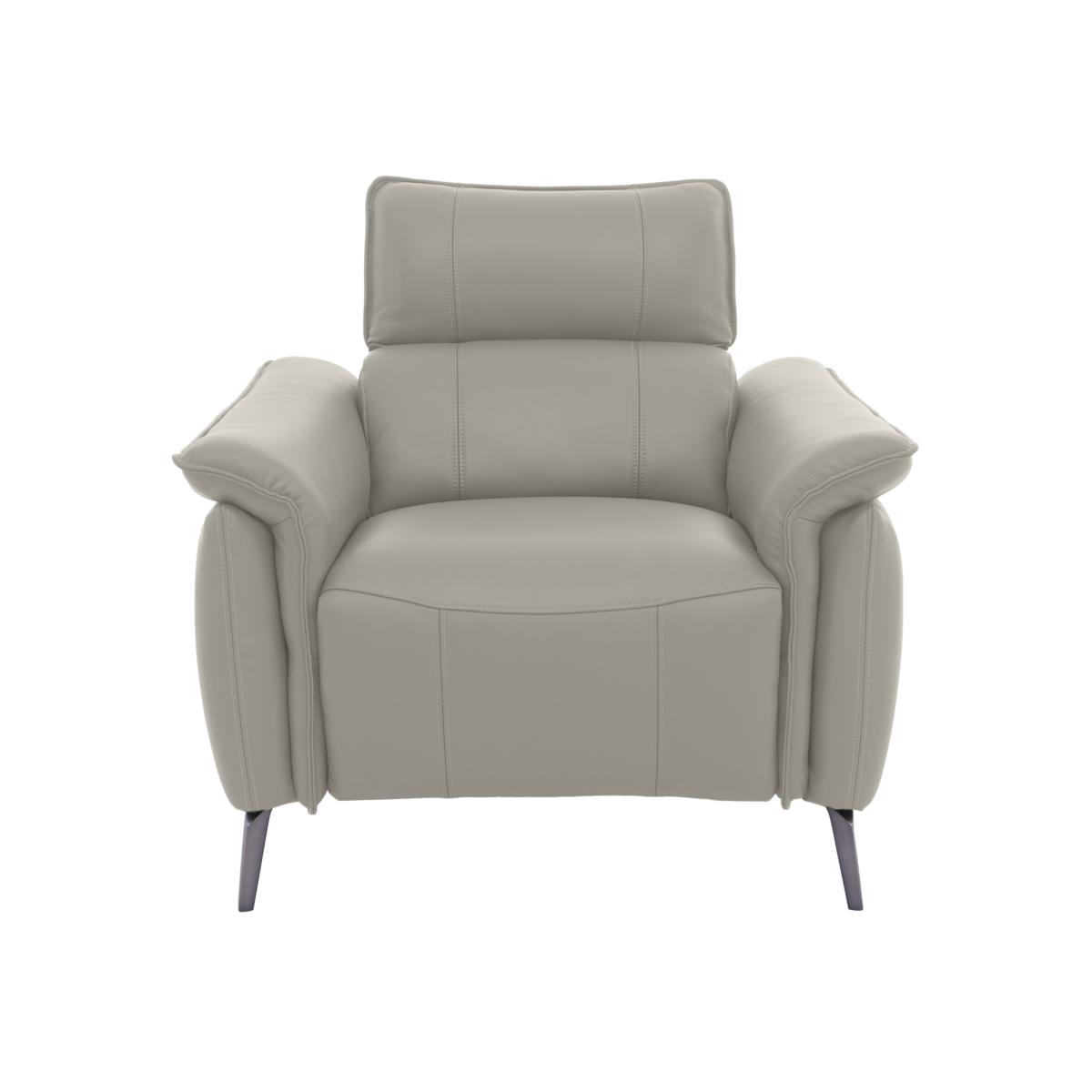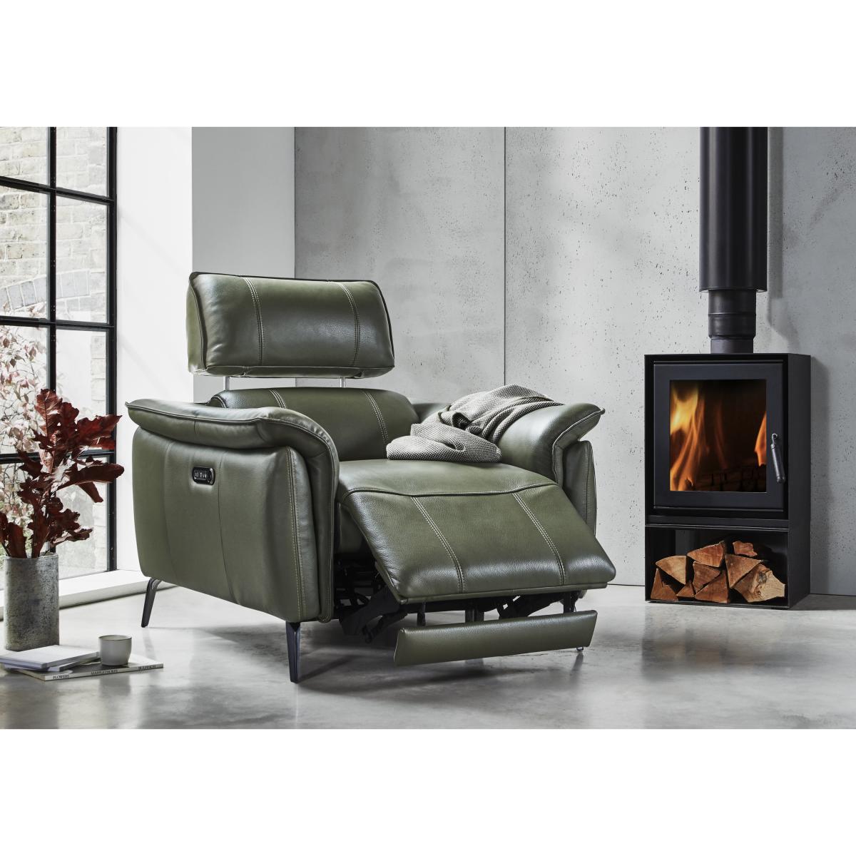 With its clean-lined contemporary look and outstanding pocket sprung seats, the Jude range strikes the perfect balance between style and comfort. This handcrafted collection includes sofas, armchairs and storage footstools and offers easy ways to find your way to perfect and personalised comfort thanks to the power recliner and telescopic headrest sofa and armchair options. Showcasing understated yet elegant metal legs in an on-trend gunmetal grey finish, pieces are upholstered in your choice of sumptuous 100% leather or high-quality fabric in a selection of colours. The Jude range is exclusively available at Furniture Village. Always wanted a leather armchair that you could call your own? Pick this one. With pocket sprung seats and power everything, you’ll feel right at home. Why you'll love it Leather power recliner armchair with power headrest looks good and feels even better. Relaxed contemporary style. With power telescopic headrest and power recliner for head-to-toe comfort. Built-in USB and USB-C charging for the ultimate in convenience. Supportive pocket sprung seat and superb lumbar and arm cushioning. Butter-soft leather upholstery in a choice of colours. Slender metal legs have a gunmetal grey finish. Handmade exclusively for Furniture Village. This leather power recliner armchair with power headrest is part of the Jude range. What you need to know Medium comfort level. Seat suspension: sinuous spring. Seat cushioning: pocket spring, foam and fibre. Cushioning is fixed. Back suspension: webbing. Back cushioning: fibre. Cushioning is fixed. Feet are removable. Please allow time for the recliner mechanism to ease. Minor gaps are necessary to ensure ease of motion and may be exaggerated depending on floor type. Fixed seat and back cushions require smoothing and straightening regularly. To smooth and straighten fixed cushions, punch the back cushion’s top two corners and the seat cushion’s outer two corners, and pinch outwards. Leather has unique marks and characteristics with variance in colour and texture. Leather softens with use. Smoothing the tops of leather cushions prevents signs of visual comfort. Please read our upholstery care guide for more advice. Item code: JUDEPCHR60-011