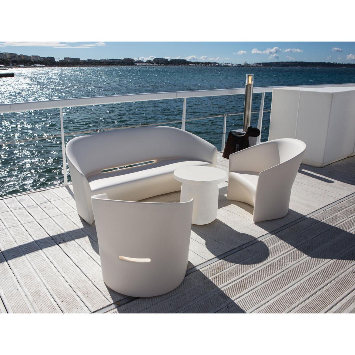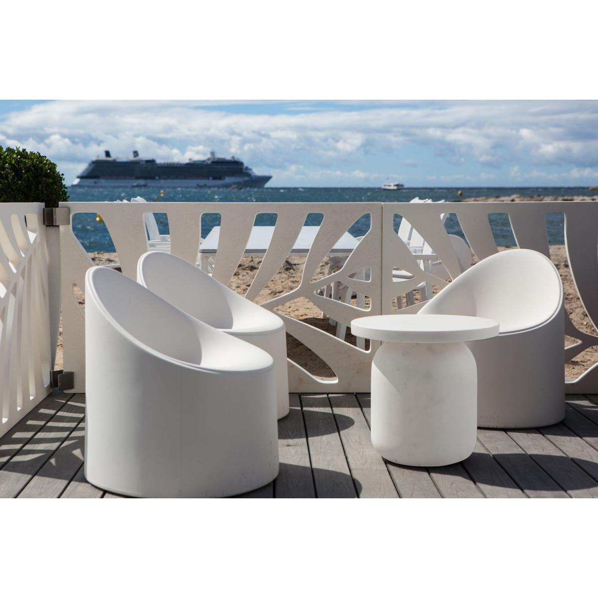 A simple form for this side table that can also fill the stool function. Playful, essential, light, resistant to UV and weathering, Juju moves easily from living room to terrace!.